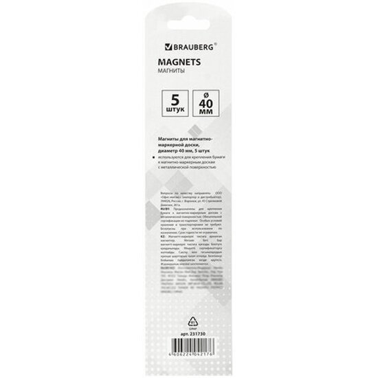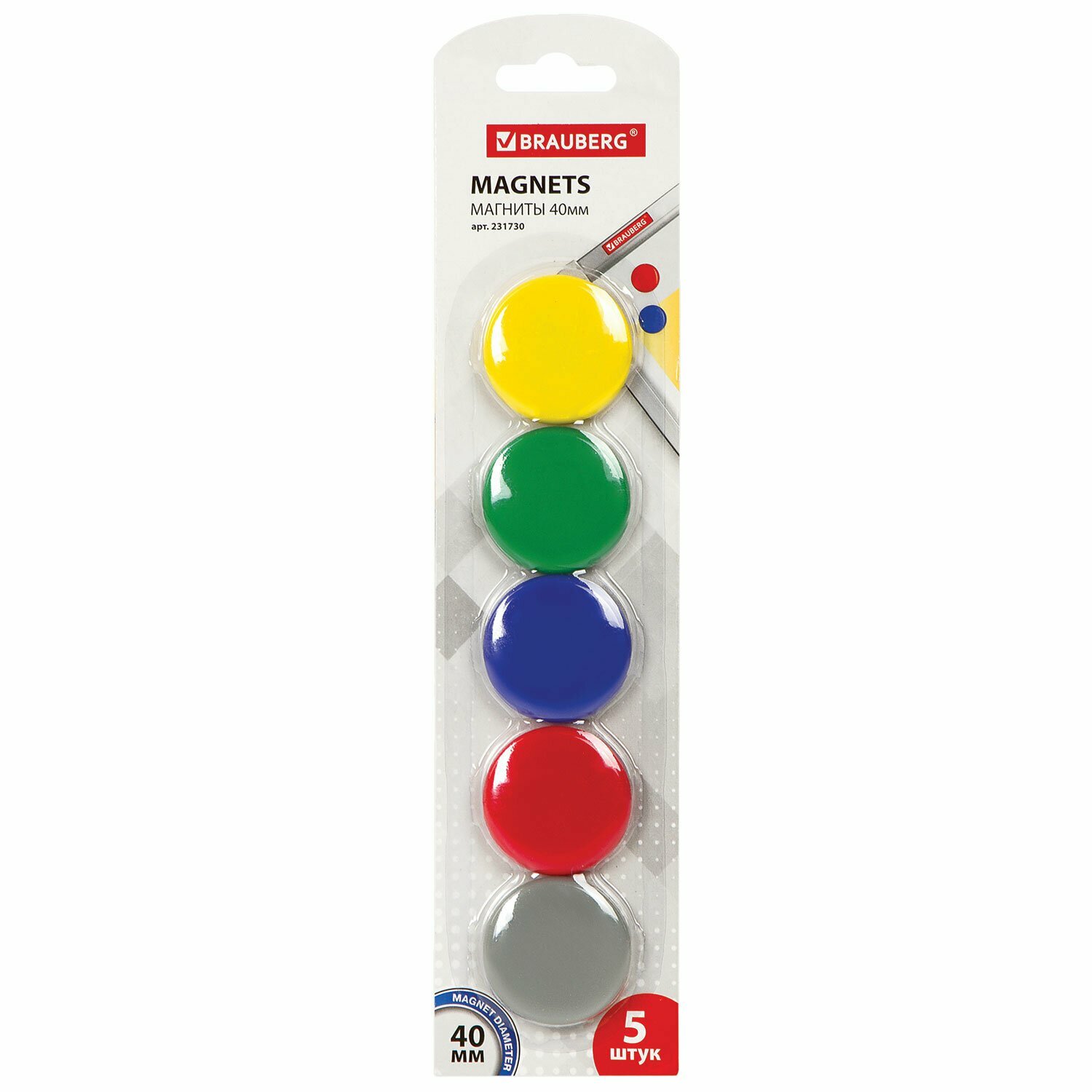 Купить Brauberg Магниты диаметр 40 мм, комплект 5 шт., цвет ассорти, в блистере