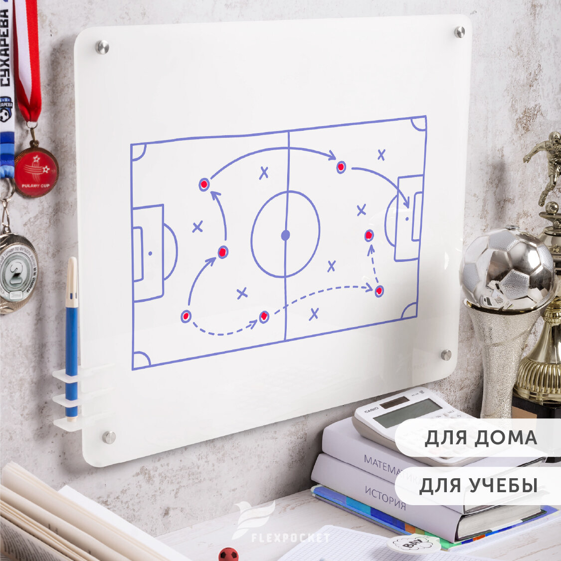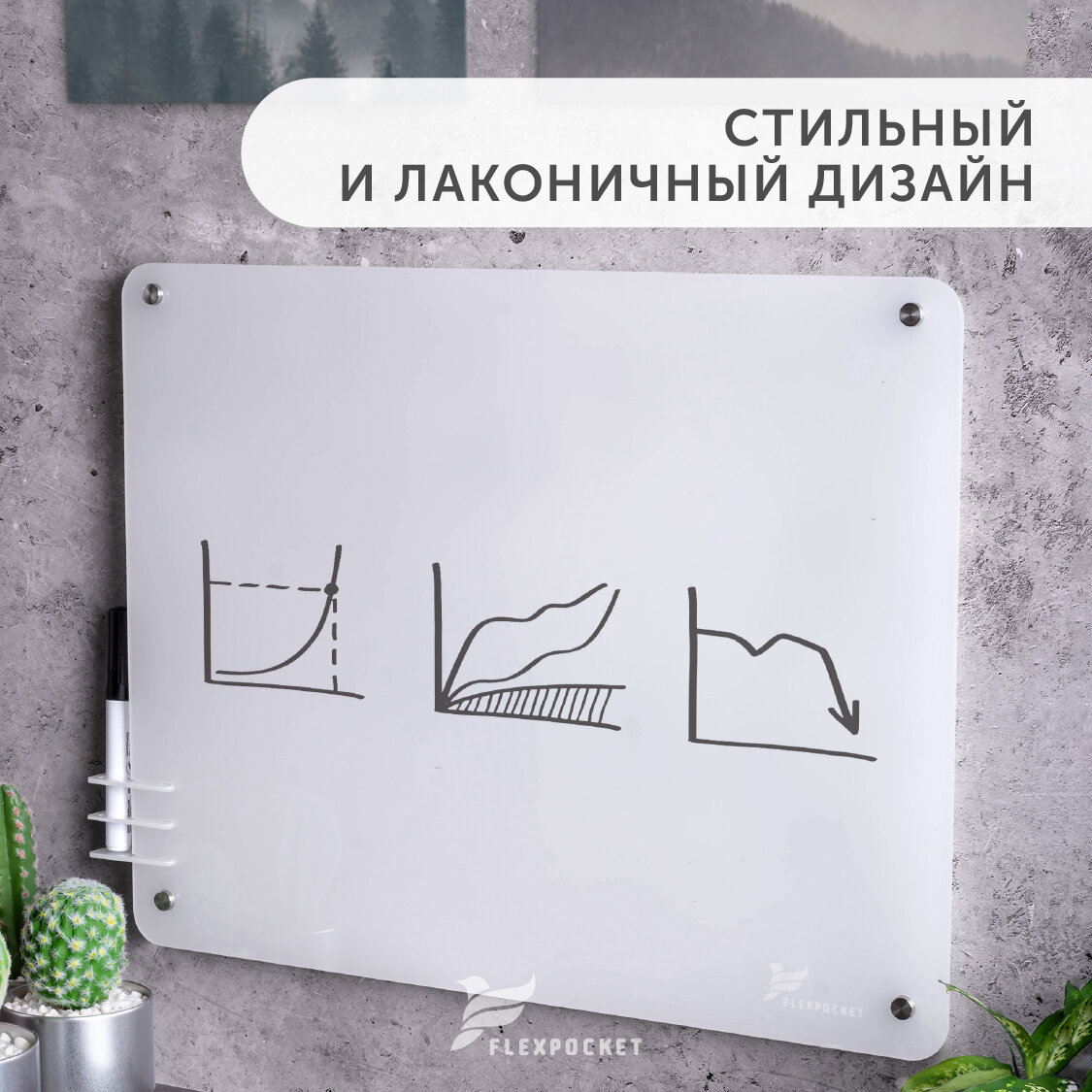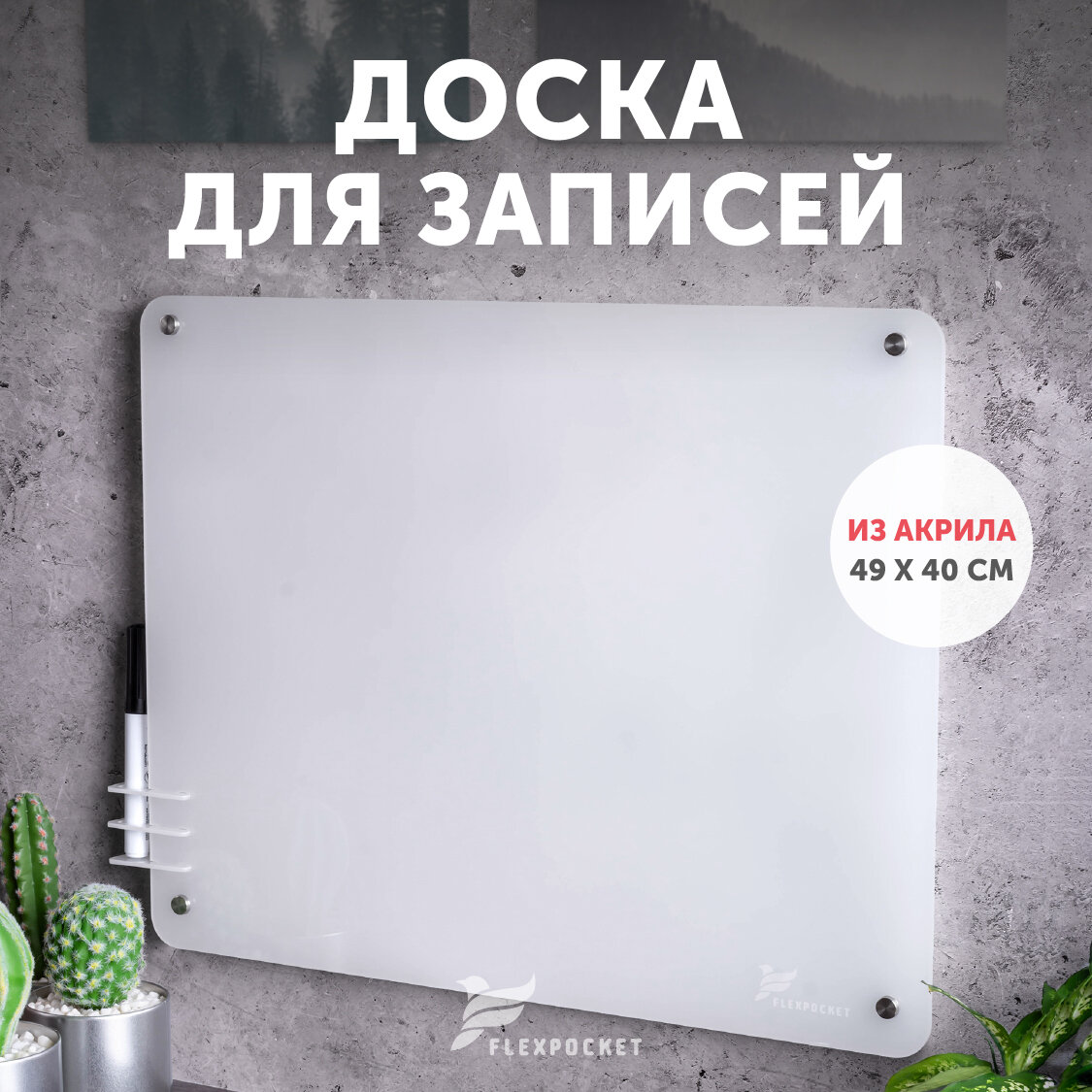Доска для записей и заметок, маркерная доска на стену из акрила для офиса, для школьников Flexpocket, 49 х 40 см интересное: