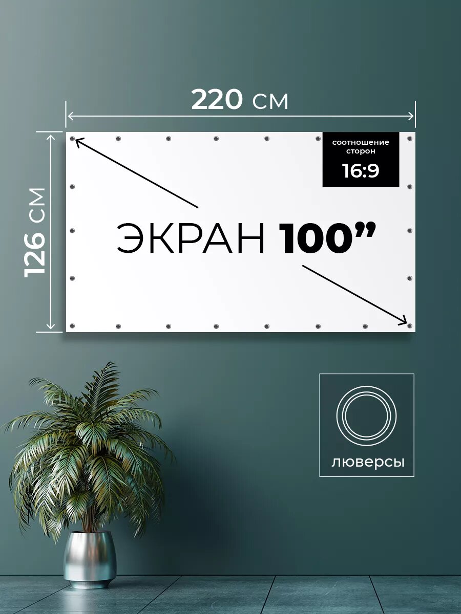 Экран для проектора 100" 16:9 (220х126 см) с люверсами интересное: