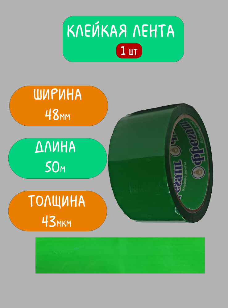 СохранитьКлейкая лента (скотч) зеленый, 1 шт, 48мм х 50м, 43мкм Фрегат интересное: