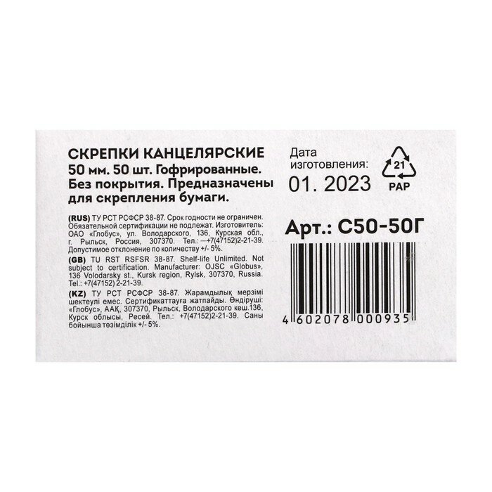 Скрепки Глобус 50 мм гофрированные, 50 шт/уп, карт. упак. интересное: