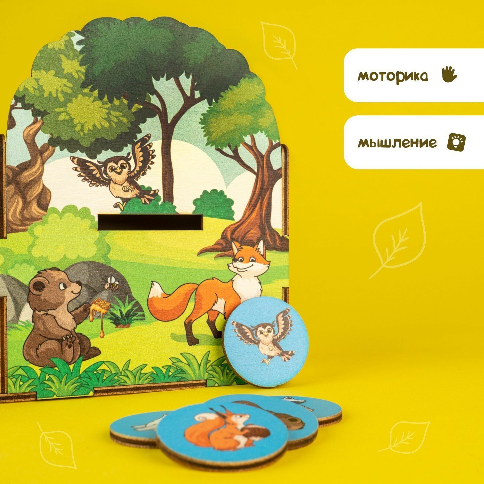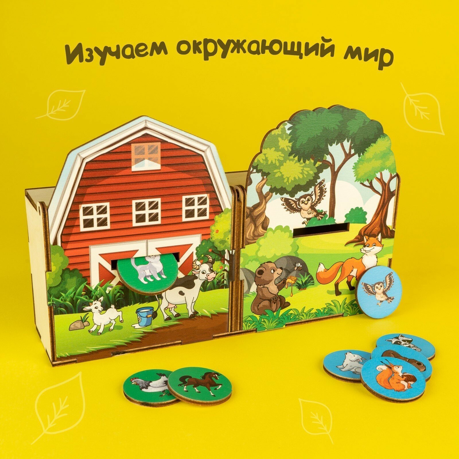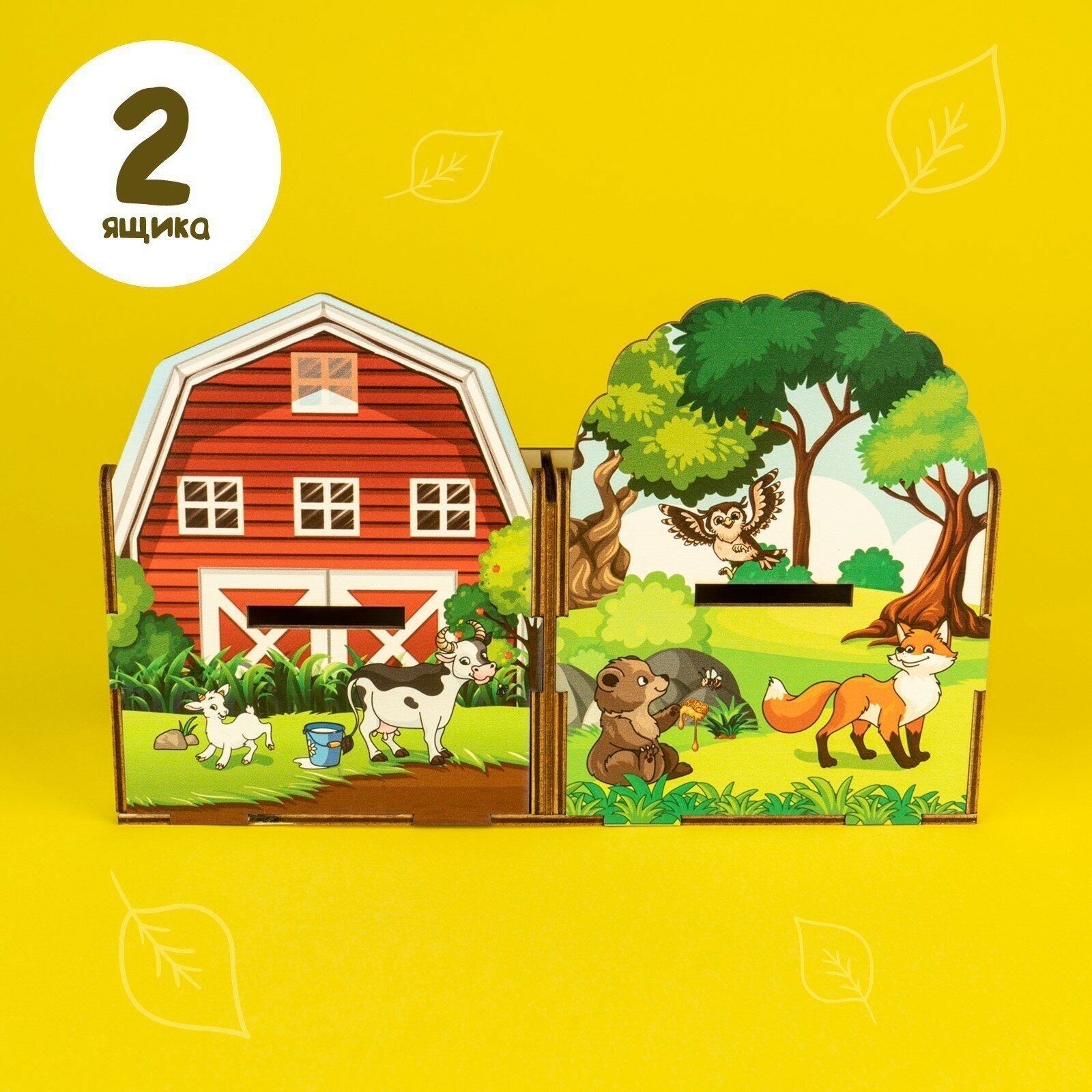 Сортер "Животные леса и фермы", Лесная мастерская, 20 деталей, 2 ящика, из дерева, для детей и малышей интересное:
