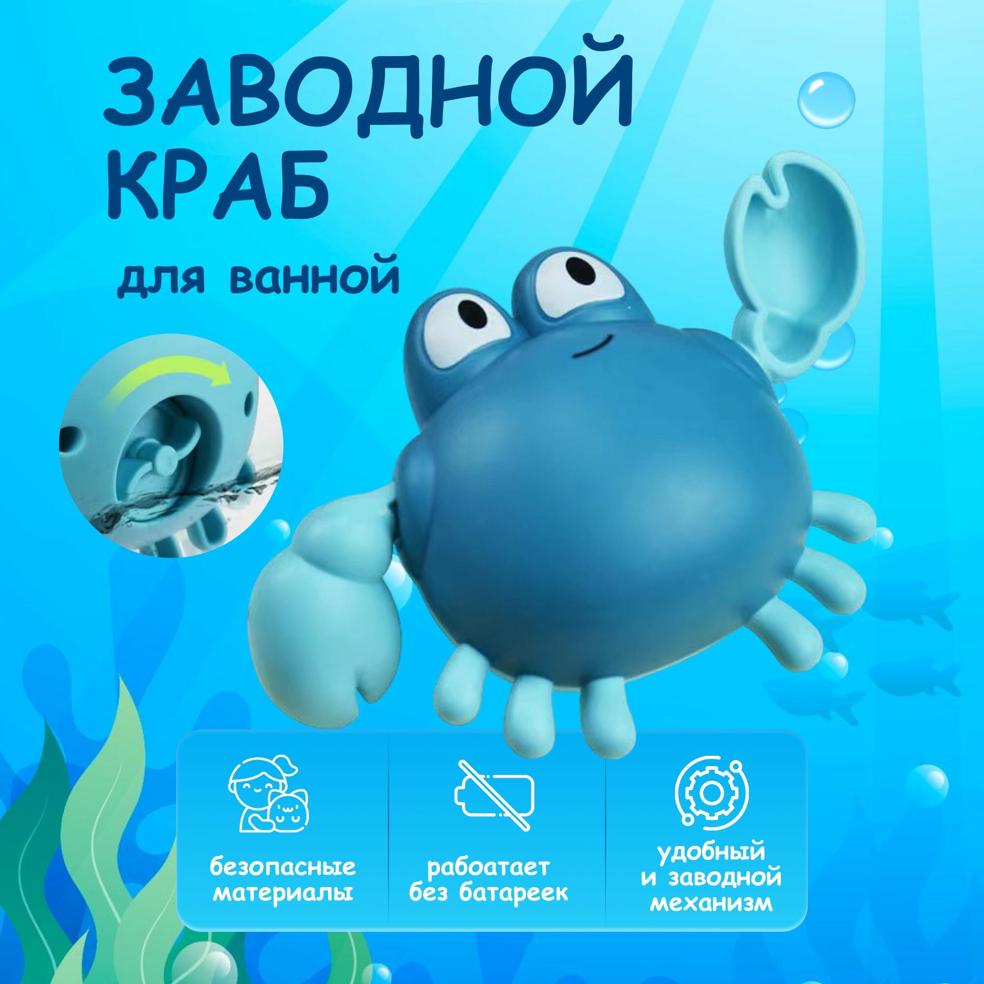 Заводная игрушка для ванной Веселый Краб интересное: