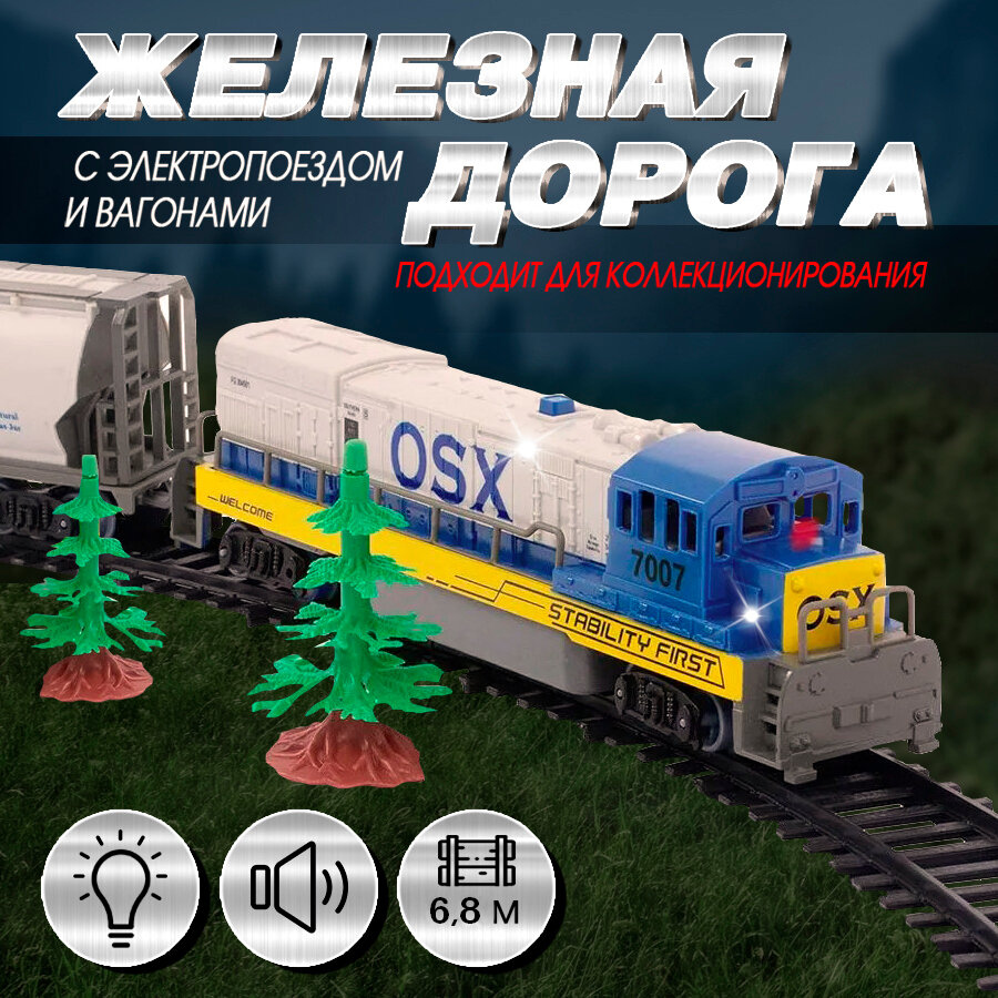 Железная дорога с электро паровозом и вагонами детская со светом и звуком
