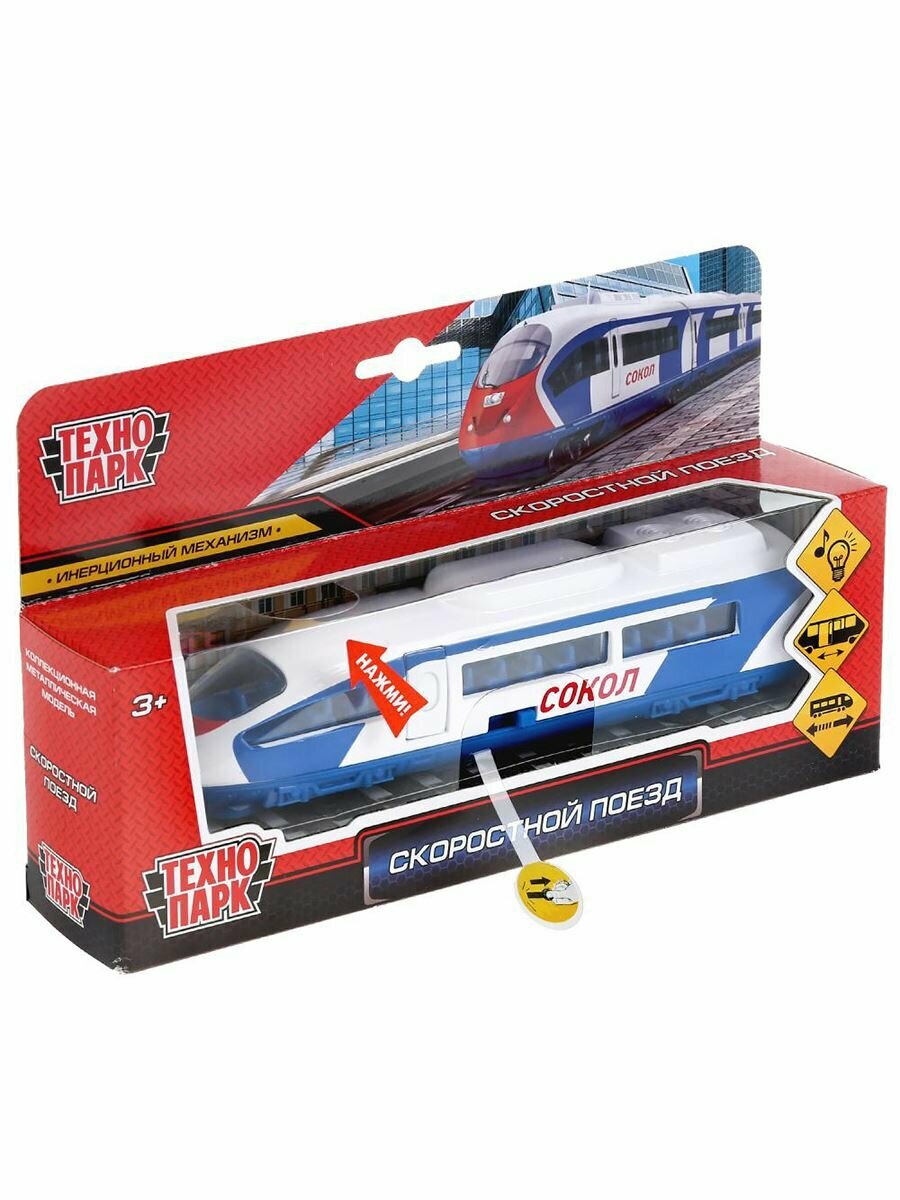 Модель Технопарк Скоростной поезд Сокол, инерционный, свет, звук SB-16-75-WB-1
