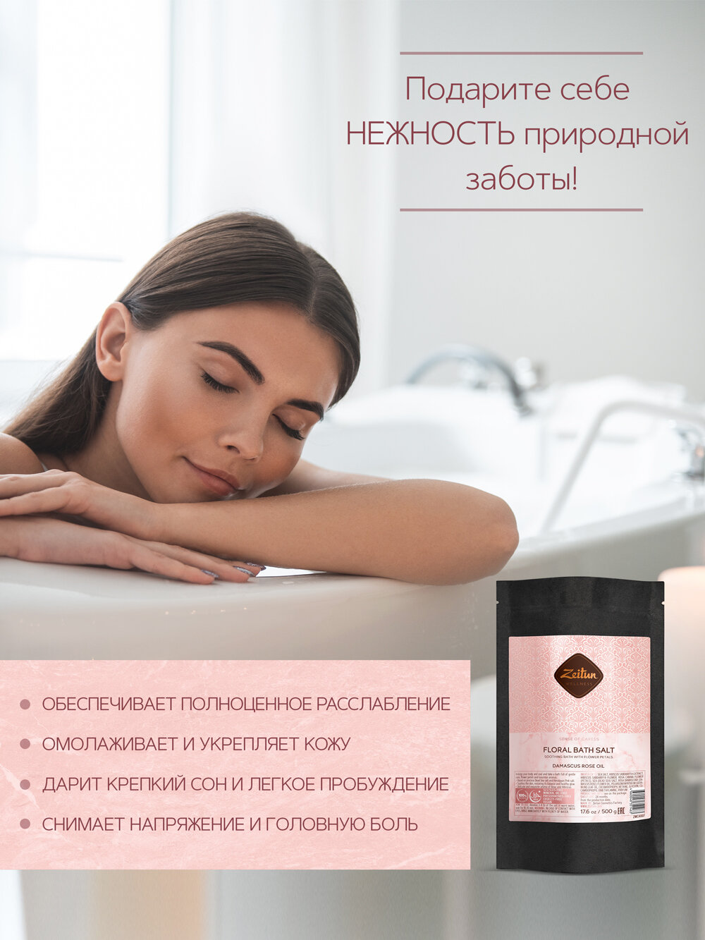 Цветочная соль для ванн "Ритуал нежности" с лепестками дамасской розы и гибискусом Zeitun интересное: