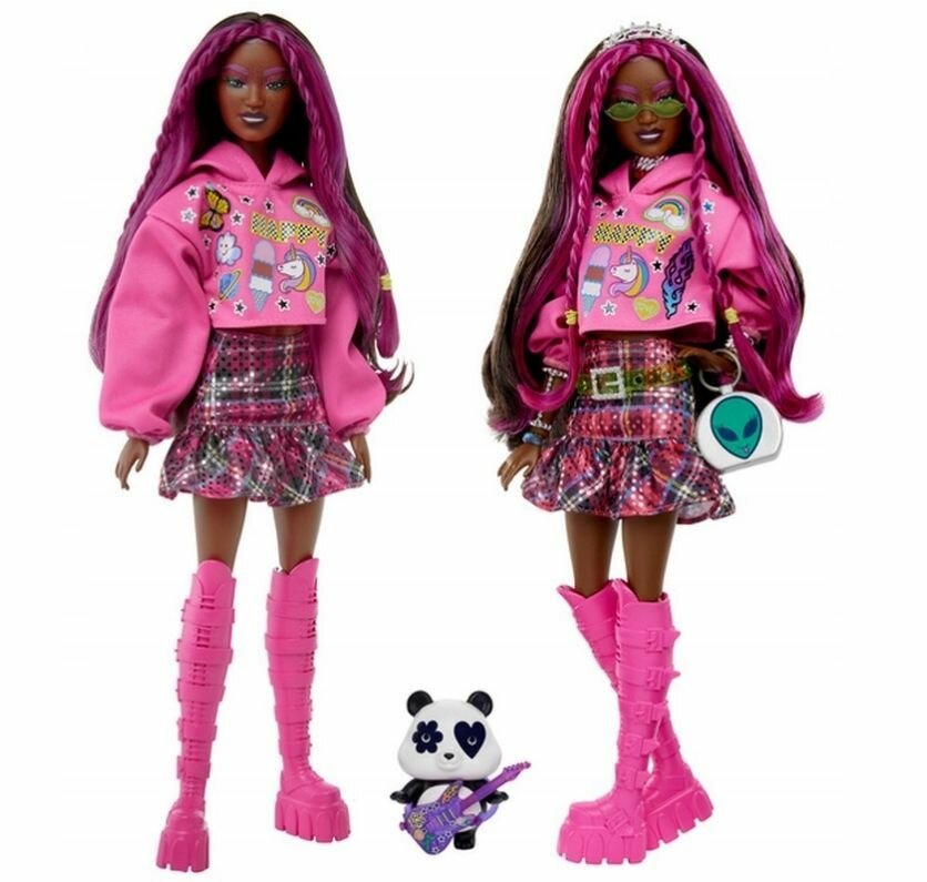Кукла Mattel Barbie Extra 19 с розовыми волосами в стиле поп-панк +панда /HKP93