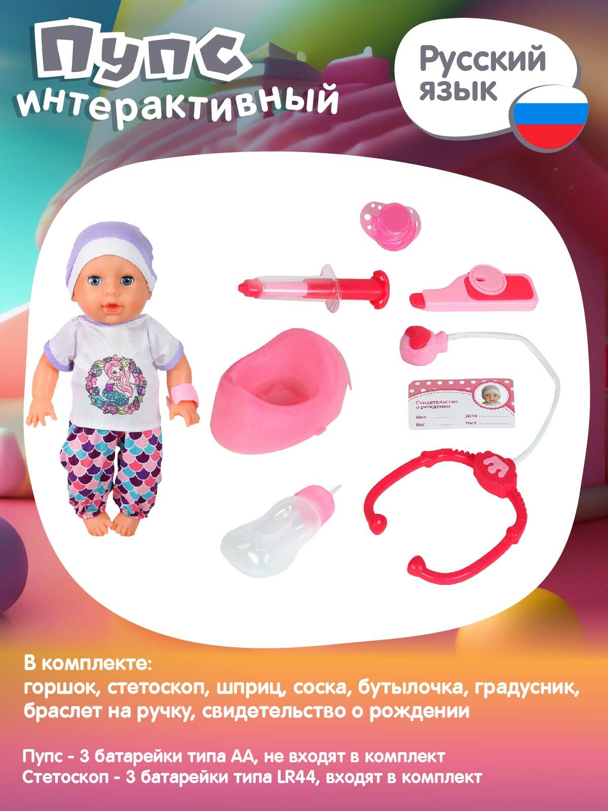 Интерактивная Кукла-Пупс с аксессуарами, плачет/смеется, говорит фразы/звуки/стихи, аксессуары врача, JB0211586