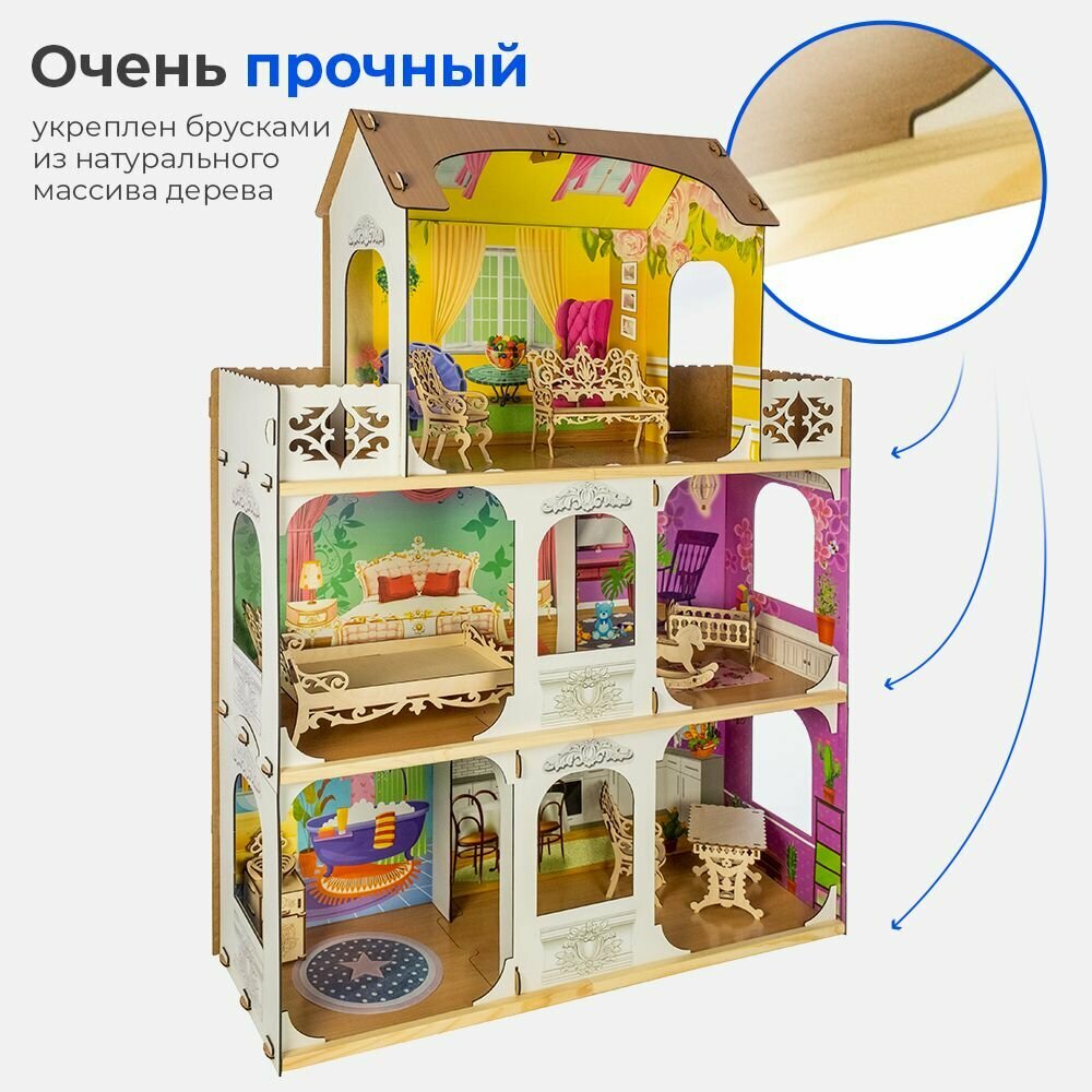 Купить Кукольный домик для Барби с мебелью, "Барбара" жел, для кукол до 30 см
