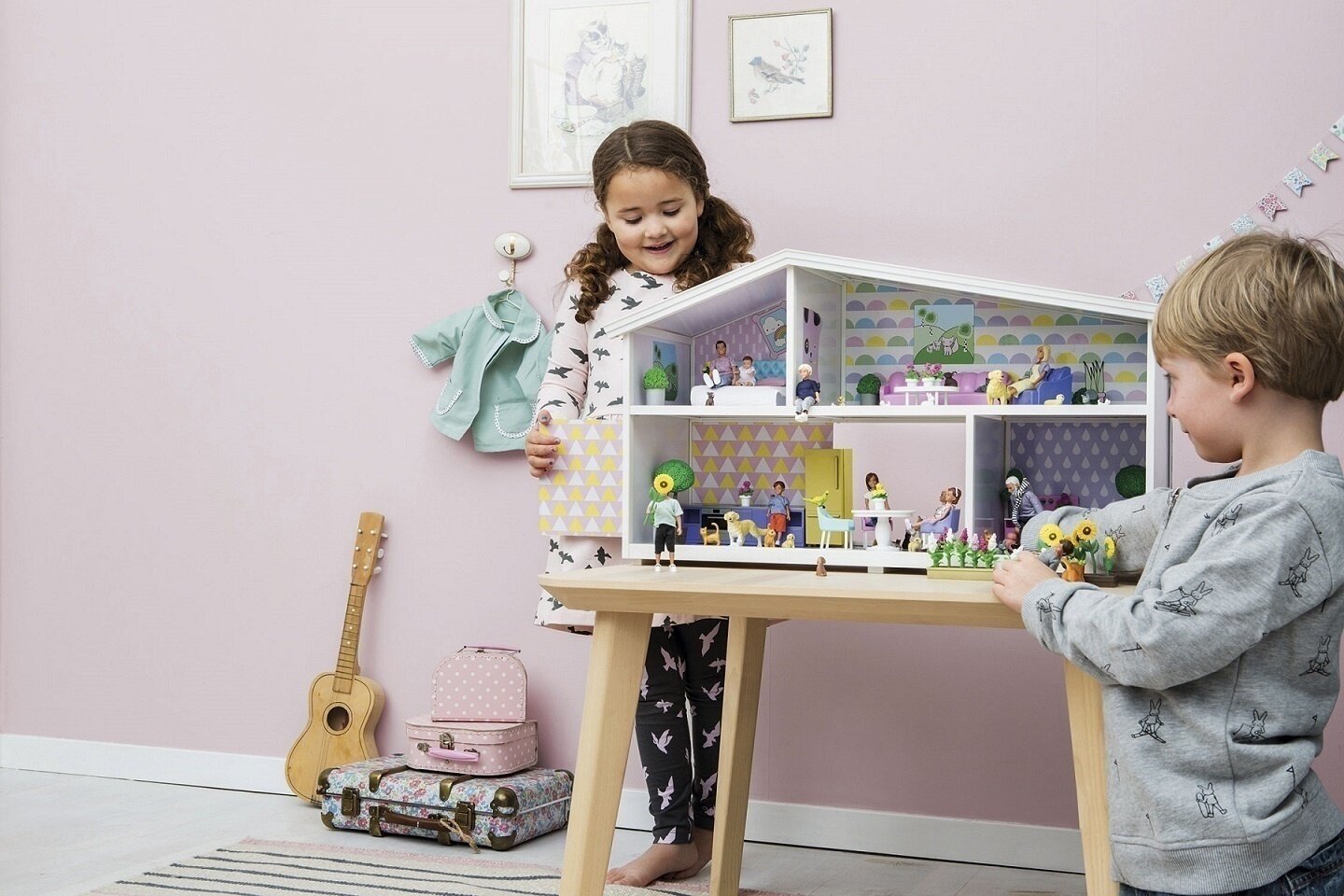 | Дополнительная информация | съемная задняя стенка, можно заменить в домике обои (приобретаются отдельно); куклы и мебель в комплект не входят; для использования функции освещения приобретайте светильники Lundby на батарейках; с помощью блока питания подключить свет нельзя |