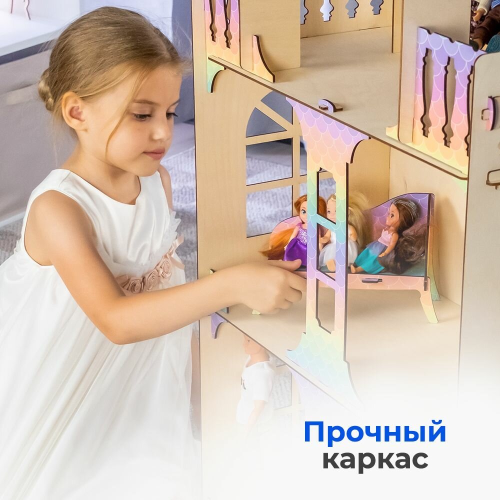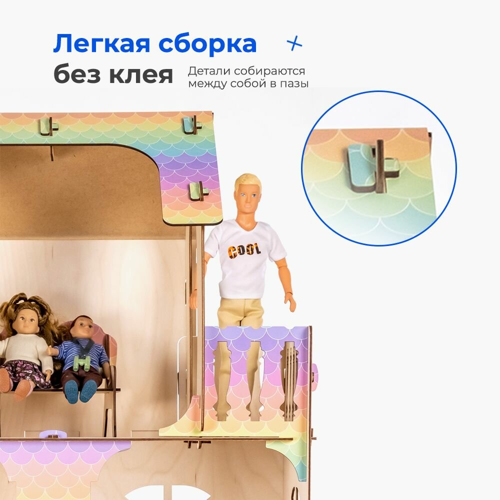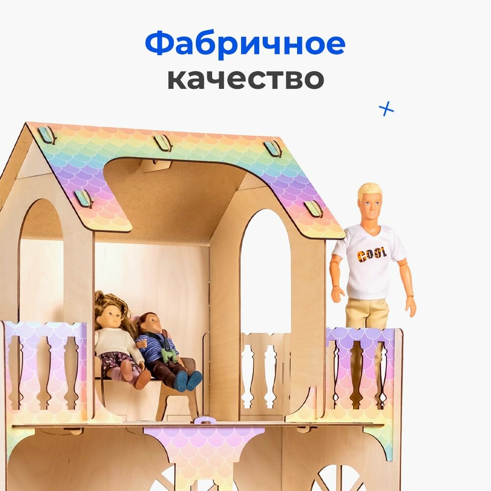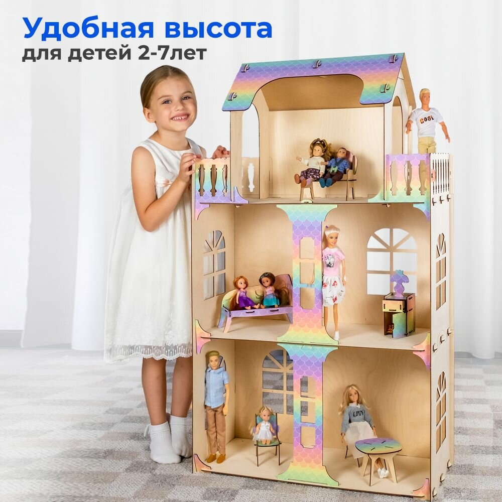 Купить Кукольный домик с мебелью для кукол Барби и других до 30 см, Радуга