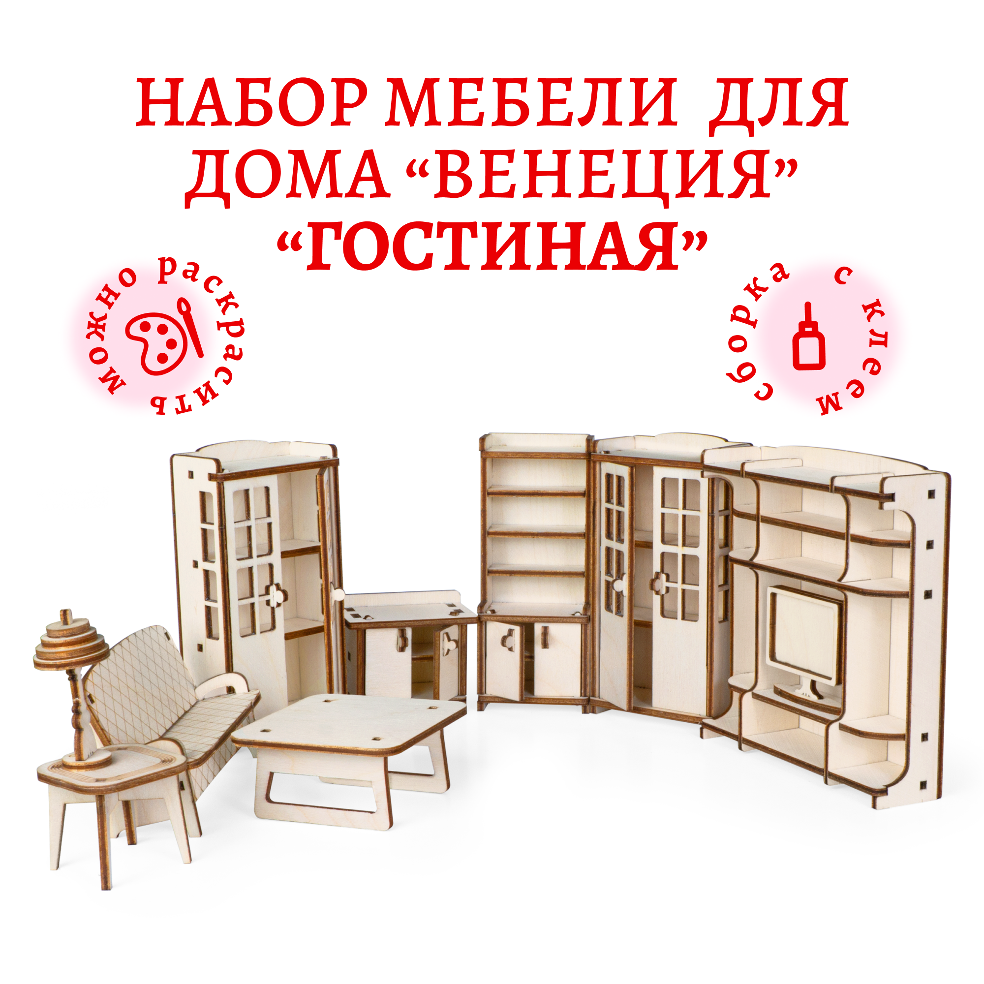 Набор кукольной мебели Lemmo "Гостиная" для домика "Венеция" интересное: