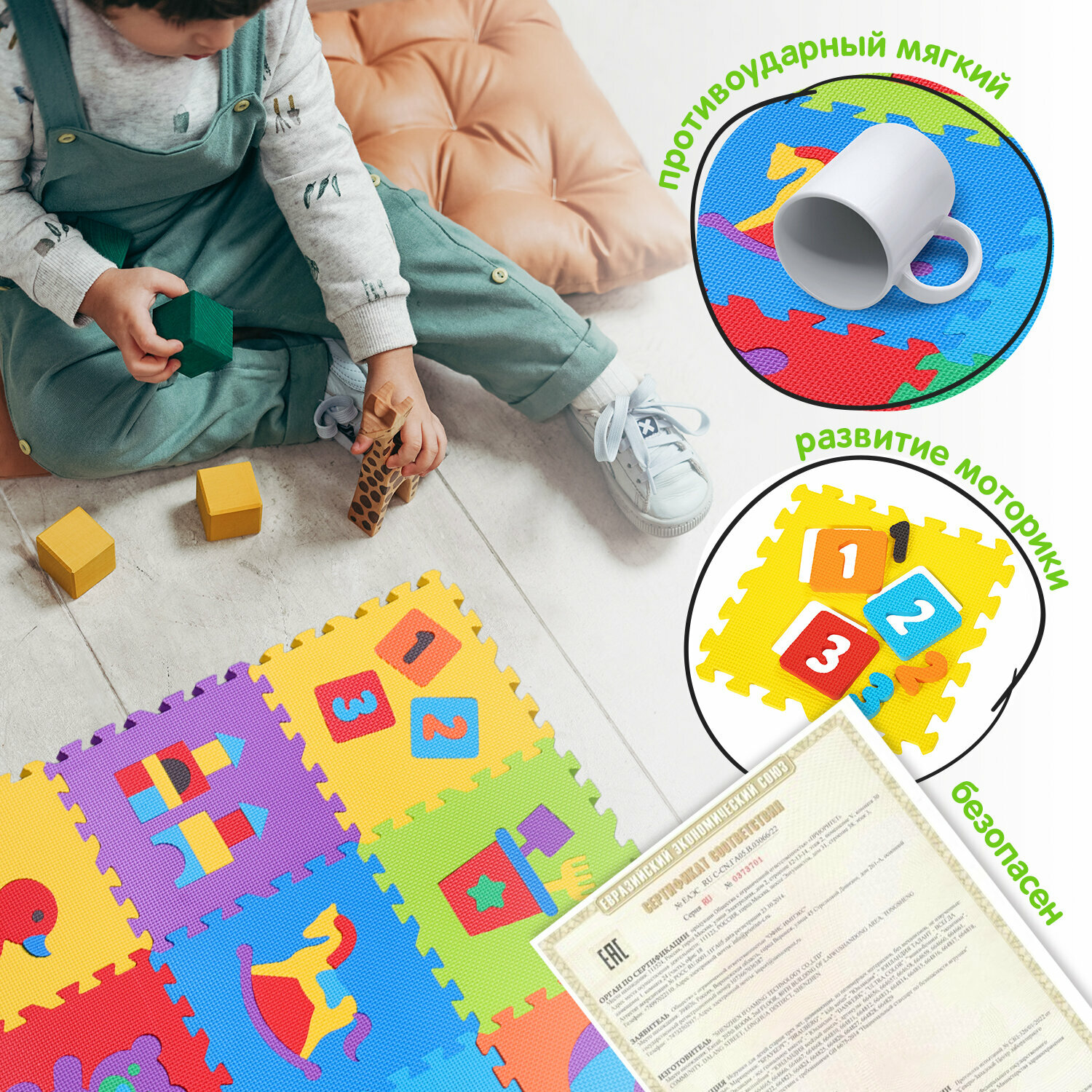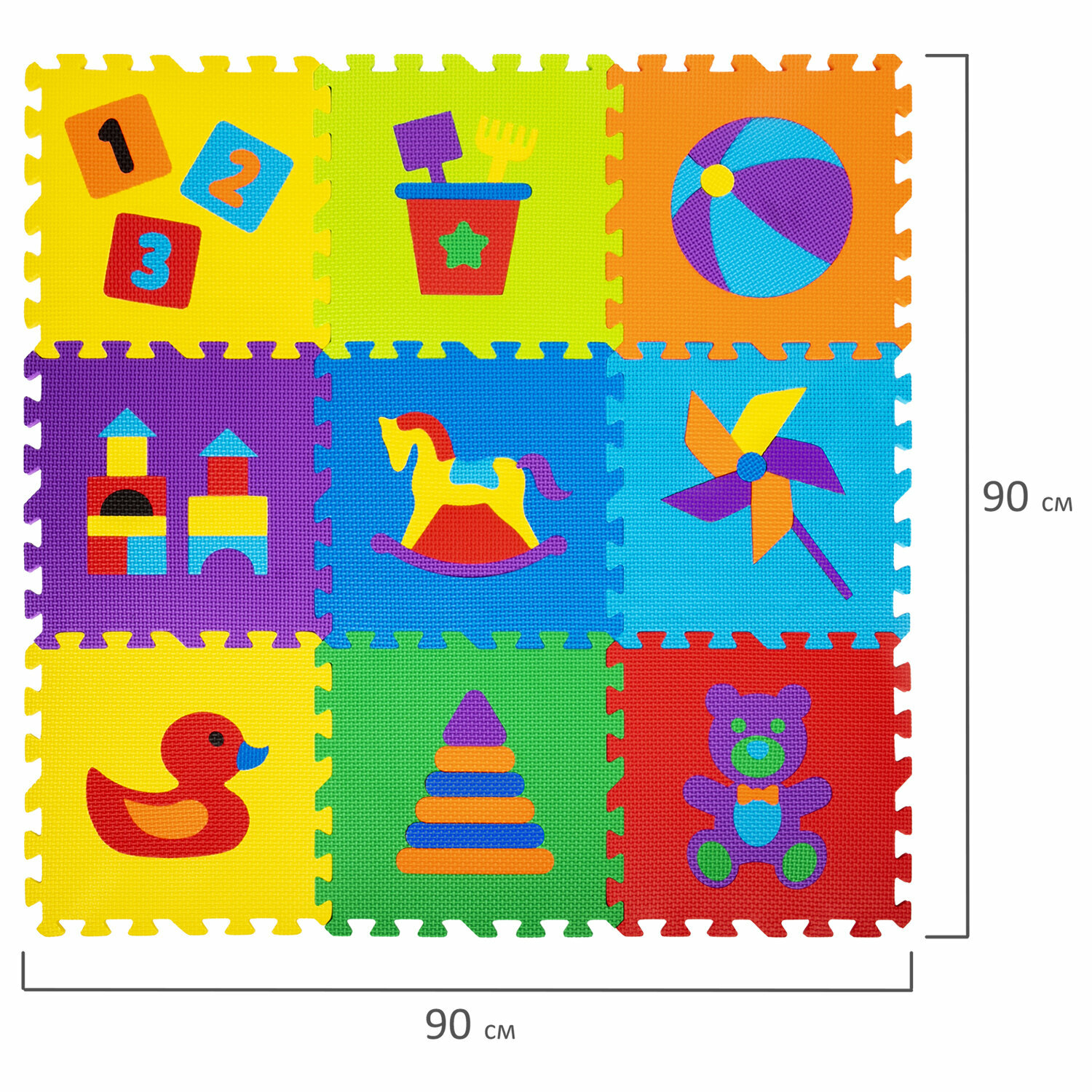 Коврик-пазл напольный 0,9х0,9 м, мягкий, "Игрушки", 9 частей 30х30 см, толщина 1 см, юнландия, 646668, 664668, 1шт в компл. интересное: