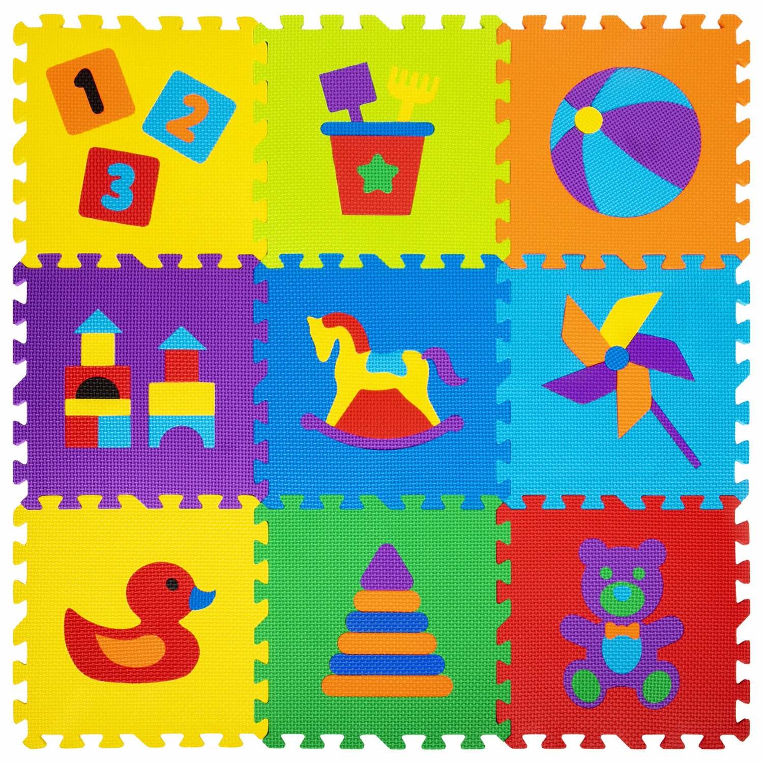 Купить Коврик-пазл напольный 0,9х0,9 м, мягкий, "Игрушки", 9 частей 30х30 см, толщина 1 см, юнландия, 646668, 664668, 1шт в компл.
