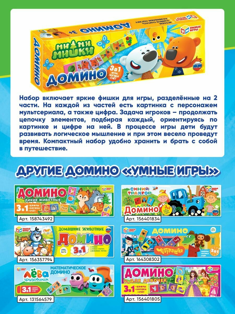 Домино пластмассовое Умные игры Ми-Ми-Мишки интересное: