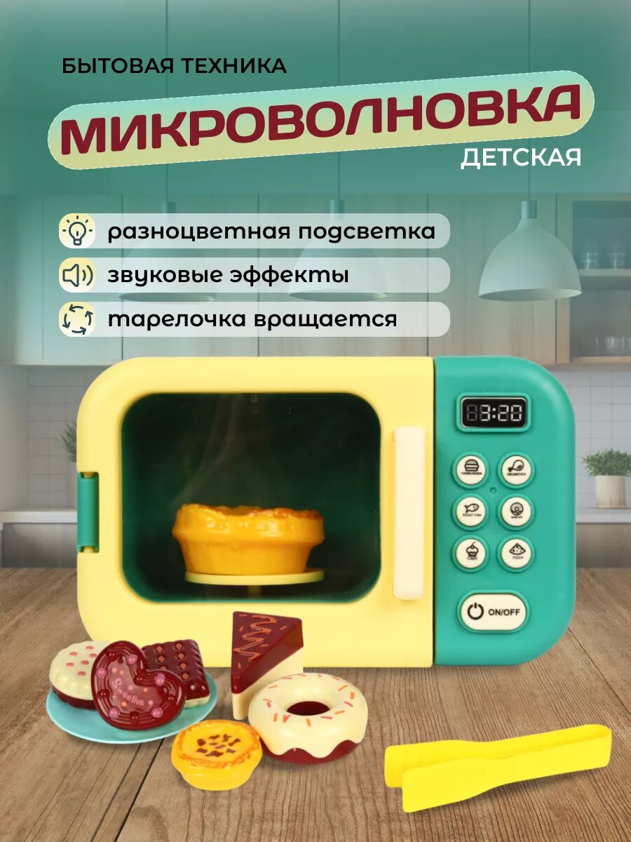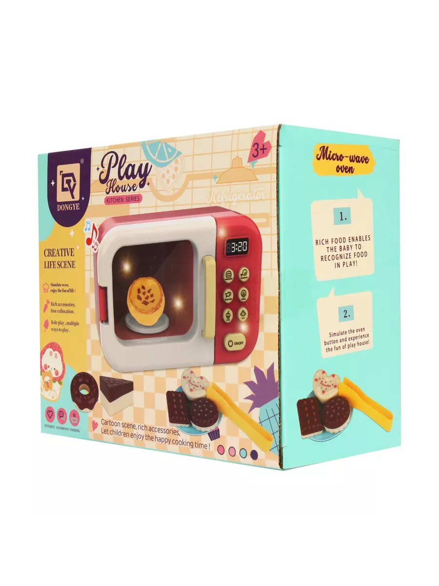 СохранитьИгрушечная микроволновая печь 9 предметов, детская бытовая техника, ролевые игры, обучающая игрушка микроволновка для девочек для мальчиков, возраст 3+ интересное: