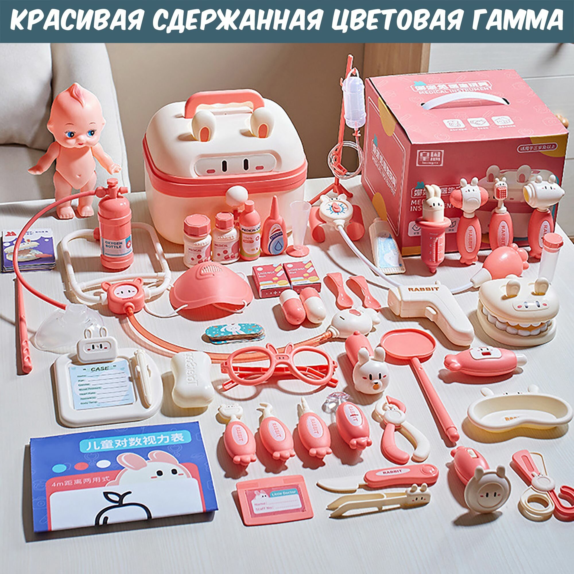 Набор доктора детский "Кролик", с халатом, розовый, 45 предметов, на батарейках интересное: