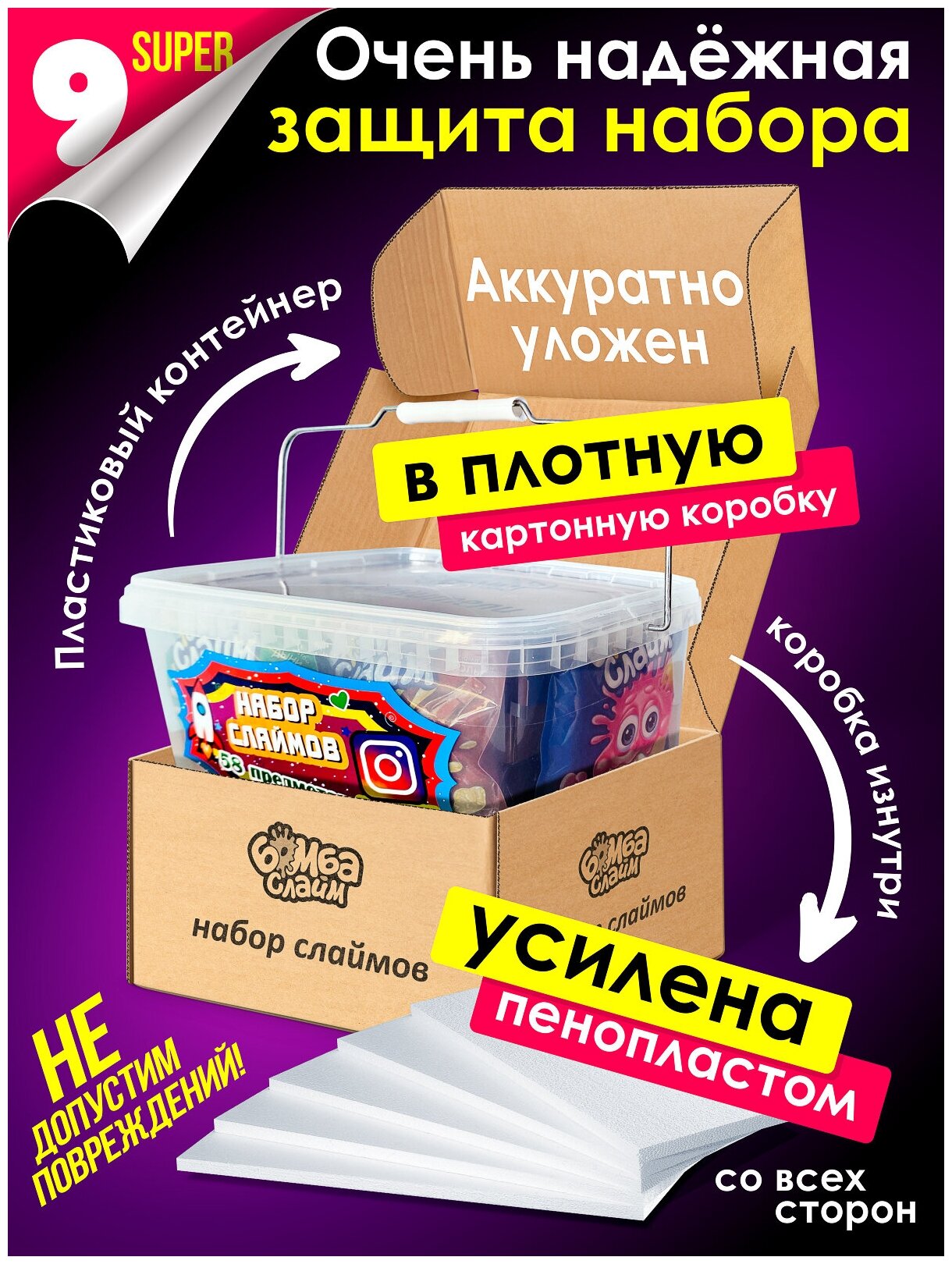 | Комплектация | 6 огромных слаймов по 250 грамм, блестки, фимо конфетти, шармики(шармы) шарики, баночки, посыпки для слаймов, фигурные контейнеры, баночки для хранения, подарочная упаковка |