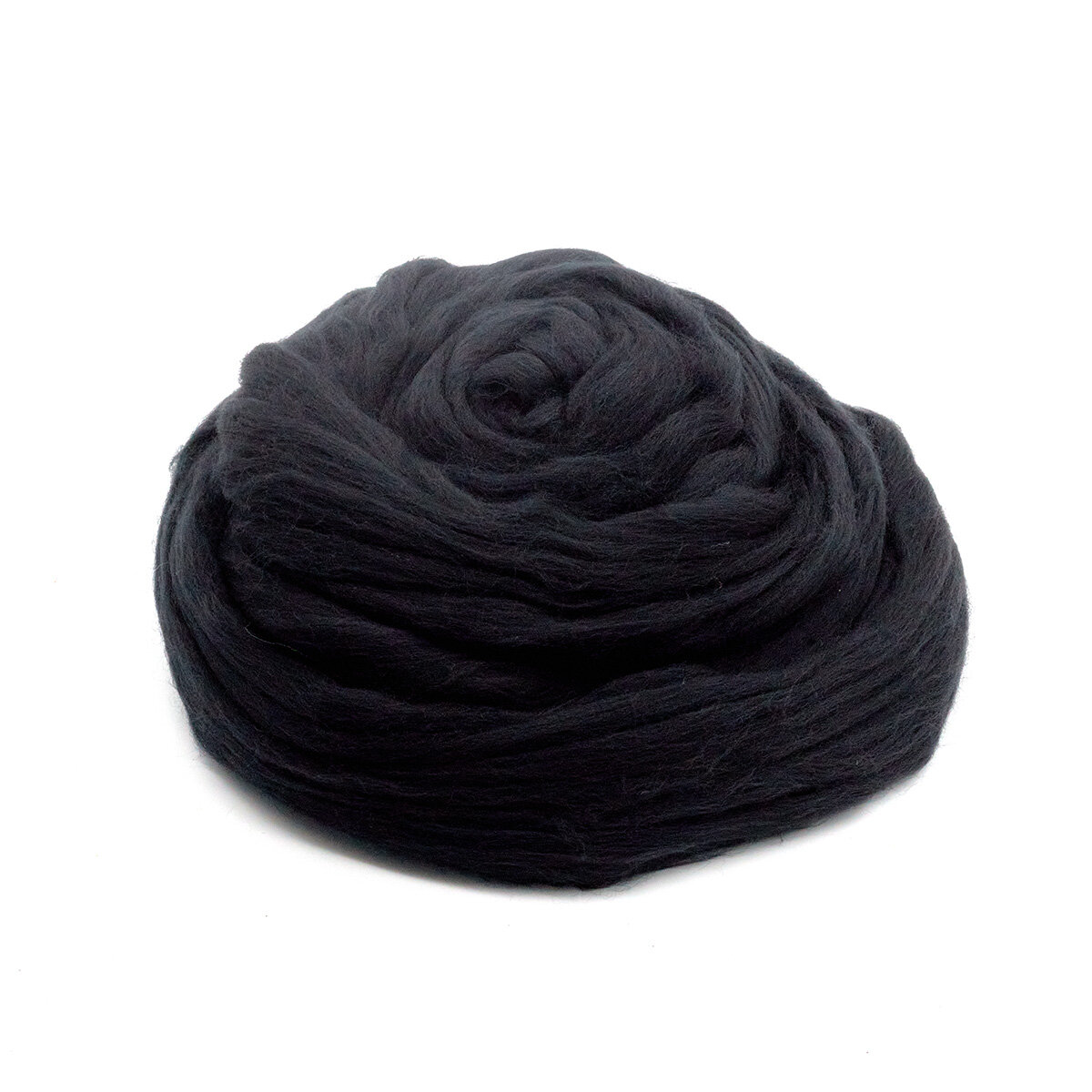 Шерсть для валяния мериносовая тонкая 100%, Пряжа из Троицка, 100 г (02 черный)