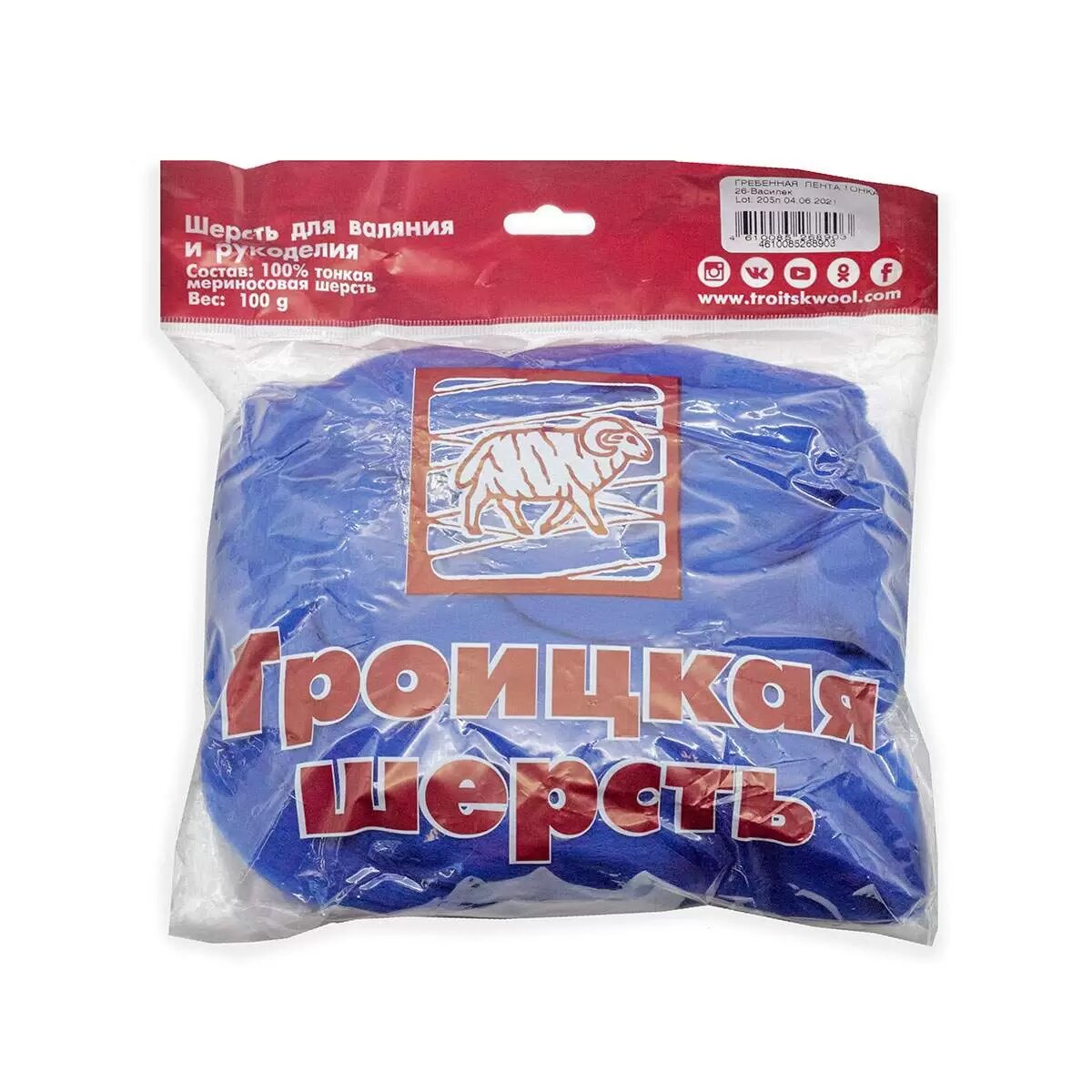 Гребенная лента Троицкая камвольная фабрика 100% тонкая мериносовая шерсть 100 гр (26 василек)