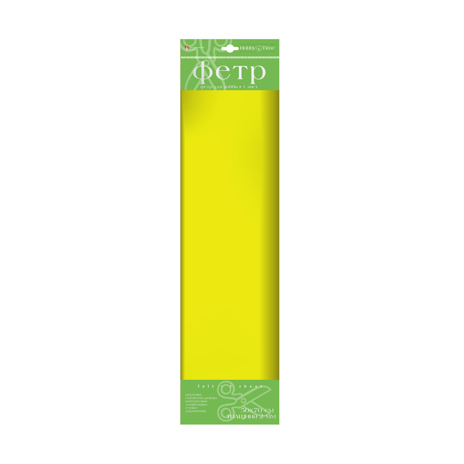 Купить Фетр Hobby Time 2 мм, в листах 50х70СМ, ( желтый )