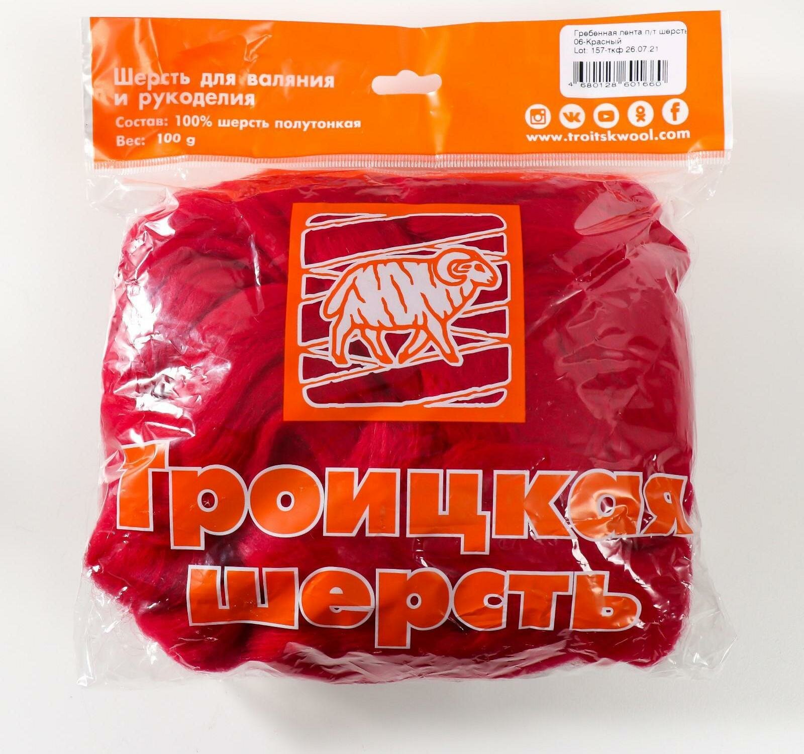 Шерсть для валяния троицк Гребенная лента 100г цв.0175 винный
