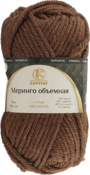 СохранитьПряжа для вязания Камтекс 'Меринго объемная', 150г, 90м (20% меринос, 20% полутонкая шерсть, 56% акрил, 4% лайкра) (121 коричневый), 4 мотка интересное: