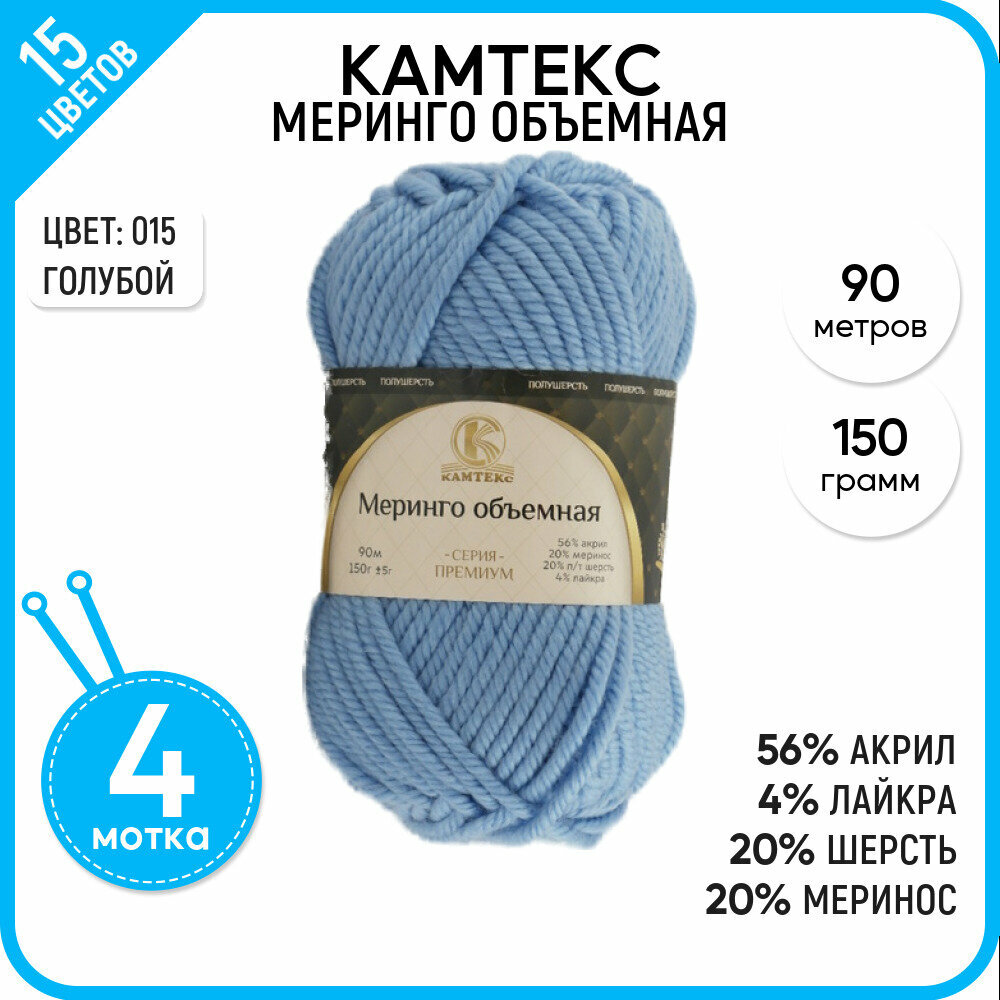 Купить Пряжа для вязания Камтекс 'Меринго объемная', 150г, 90м (20% меринос, 20% полутонкая шерсть, 56% акрил, 4% лайкра) (015 голубой), 4 мотка