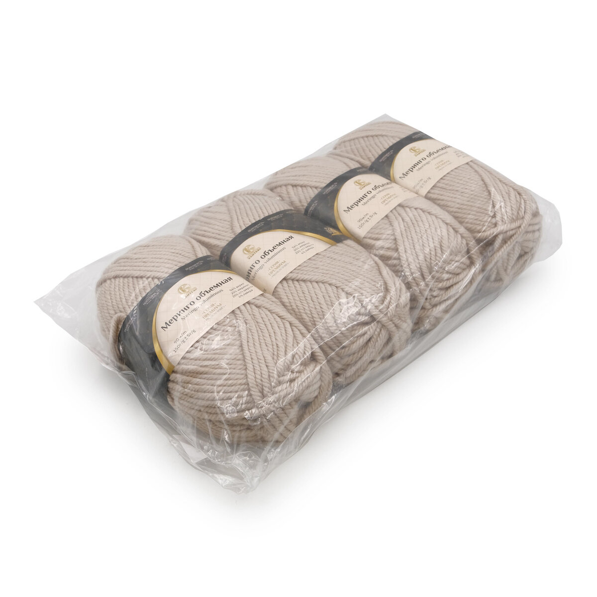 Пряжа для вязания Камтекс 'Меринго объемная', 150г, 90м (20% меринос, 20% полутонкая шерсть, 56% акрил, 4% лайкра) (006 светло-бежевый), 4 мотка