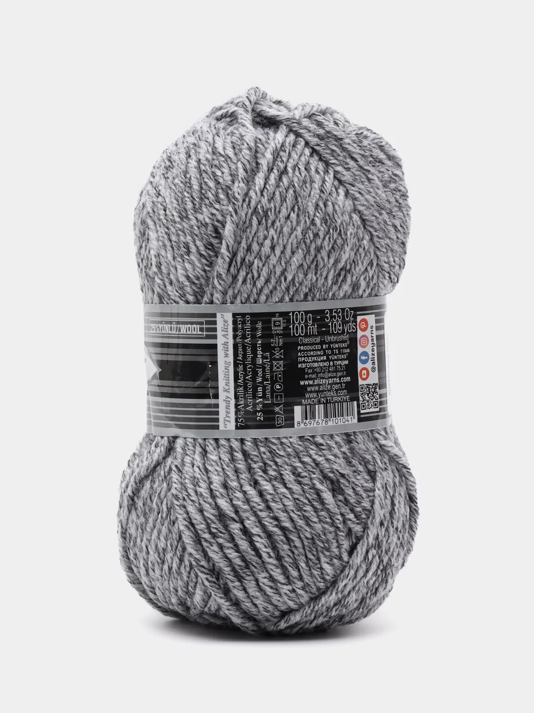 Купить Пряжа ALIZE "Superlana maxi", 100 гр 100 м, 75% акрил, 25% шерсть, ТУ 801 серый жаспе, 5 шт