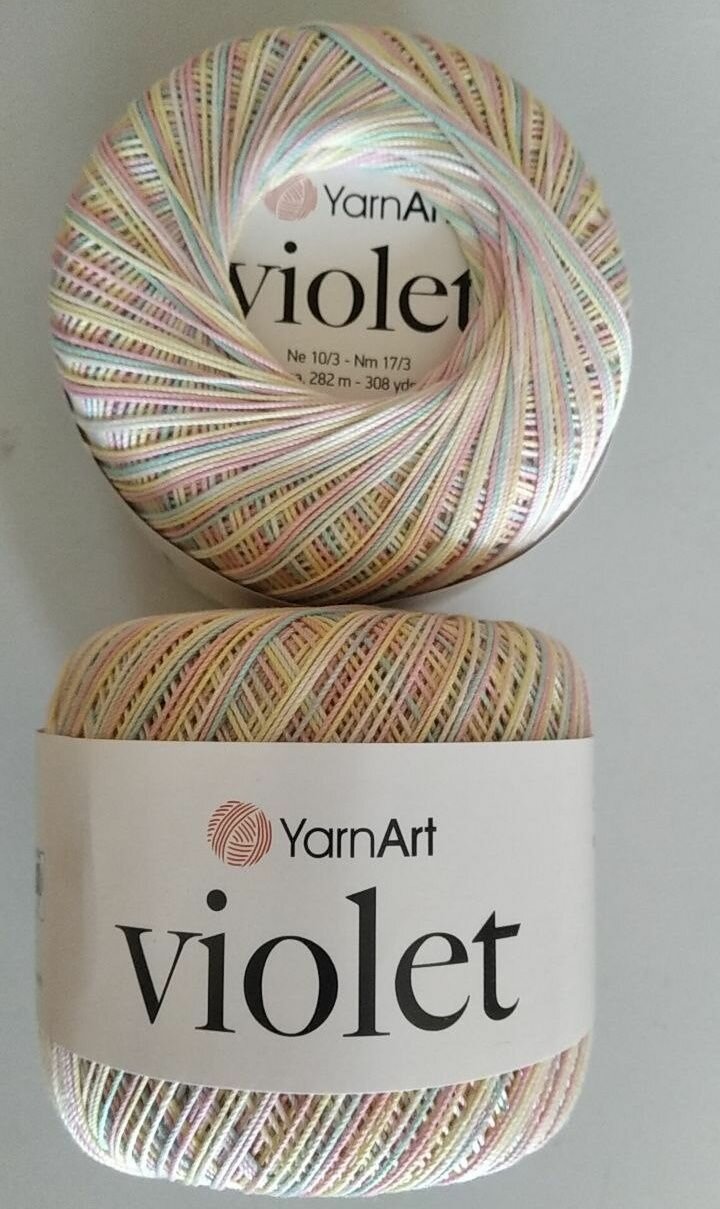 Пряжа YarnArt Violet Melange желто-розово-голубой (3194), 100%мерсеризованный хлопок, 282м, 50г, 5шт