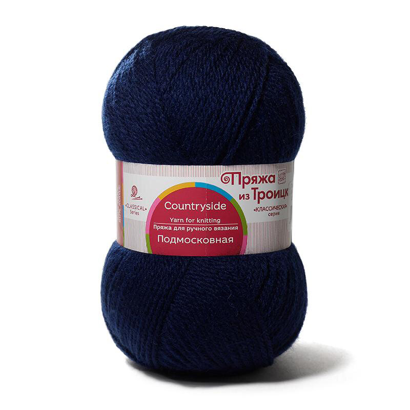 Пряжа для вязания из Троицка 'Подмосковная' 100г, 250м (50% шерсть, 50% акрил) (04 темно-синий), 10 мотков