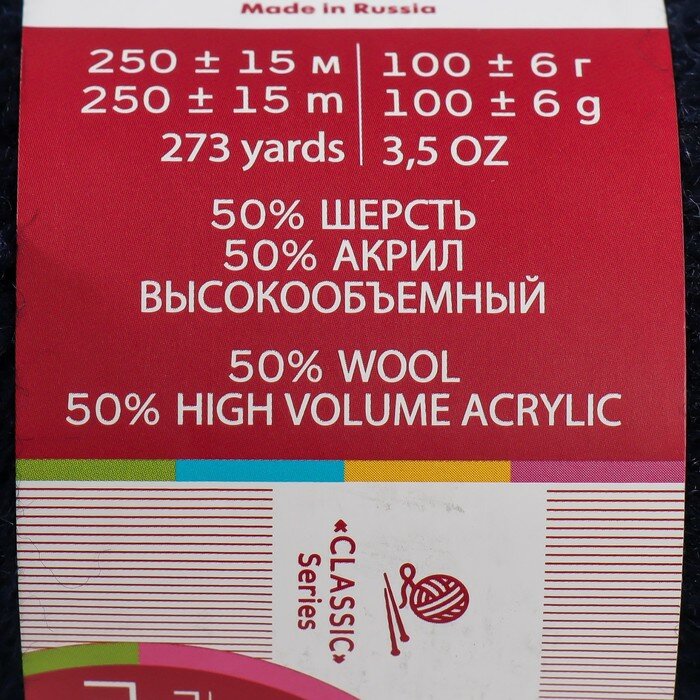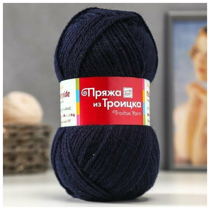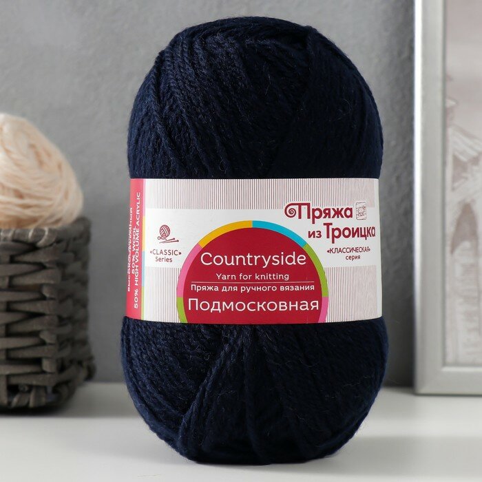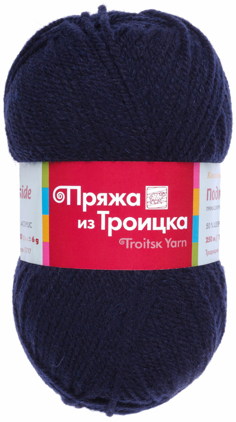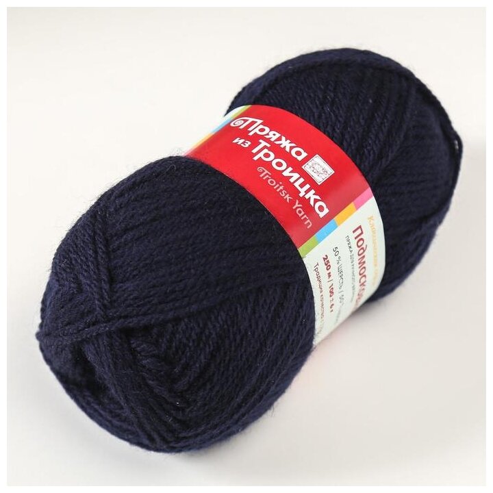 Пряжа для вязания из Троицка 'Подмосковная', 100г, 250м (50% шерсть, 50% акрил) (04 темно-синий), 10 мотков