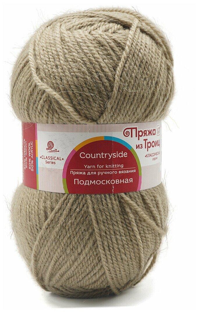 Пряжа Троицкая Подмосковная темно-бежевый (165), 50%шерсть/50%акрил, 250м, 100г, 1шт