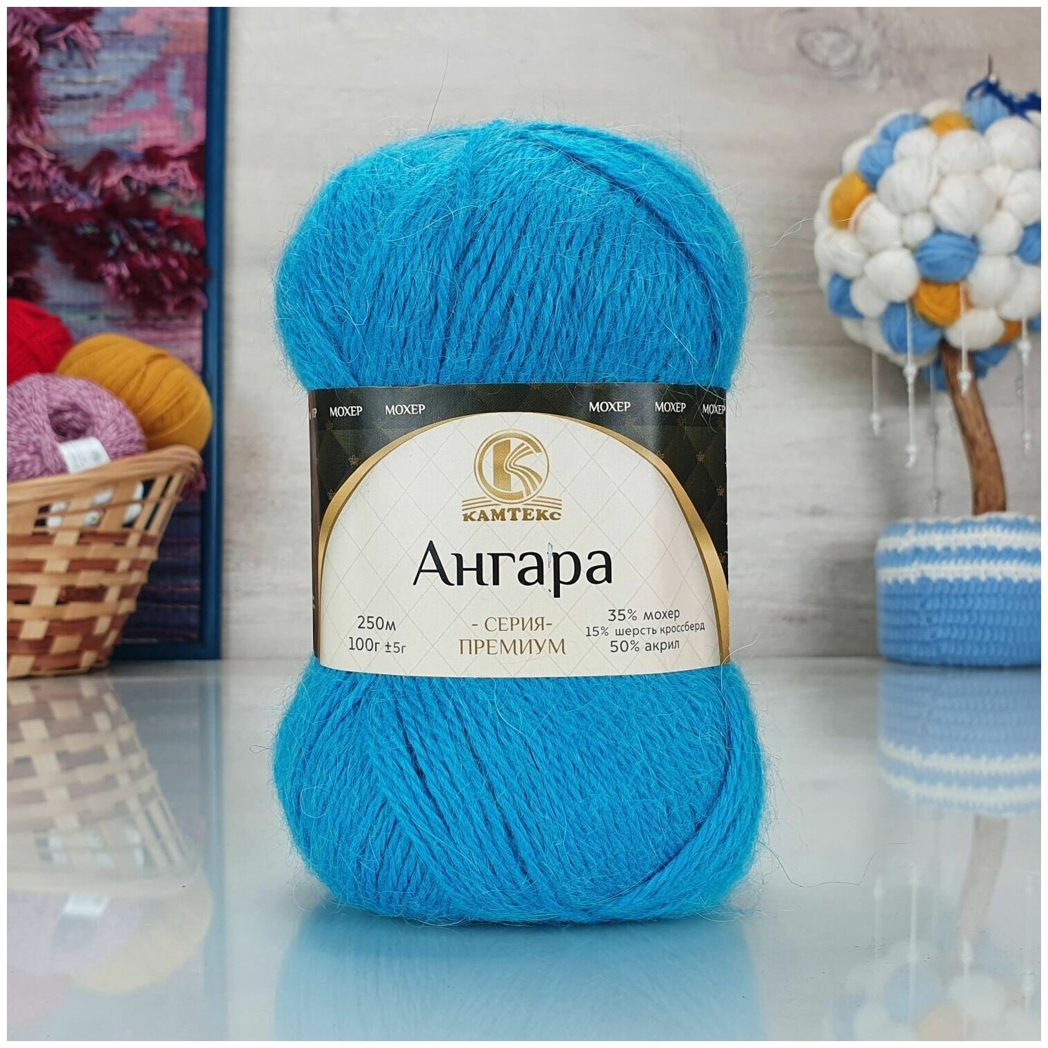 Пряжа для вязания Камтекс 'Ангара', 100 г, 250 м (35% мохер, 15% шерсть кроссбред, 50% акрил) (015 голубой), 5 мотков