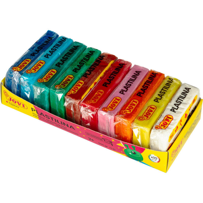 Купить Пластилин Jovi, 10 классических цветов в брусках, детский набор для лепки, без стека, в картонной упаковке/ для школы, для детей