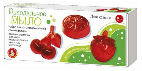 | Комплектация | Мыльная основаКрасительФормочка для мылаТакже в набор входит подробная инструкция, в которой подробно описаны все этапы изготовления мыла |