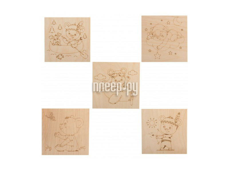 Купить Оригинальный набор досок REXANT для выжигания "Мишка" с разными рисунками (в комплекте 5 шт)
