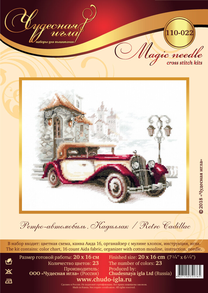 Набор для вышивания Чудесная Игла 110-022 "Ретро автомобиль Кадиллак" 20 x 16 см