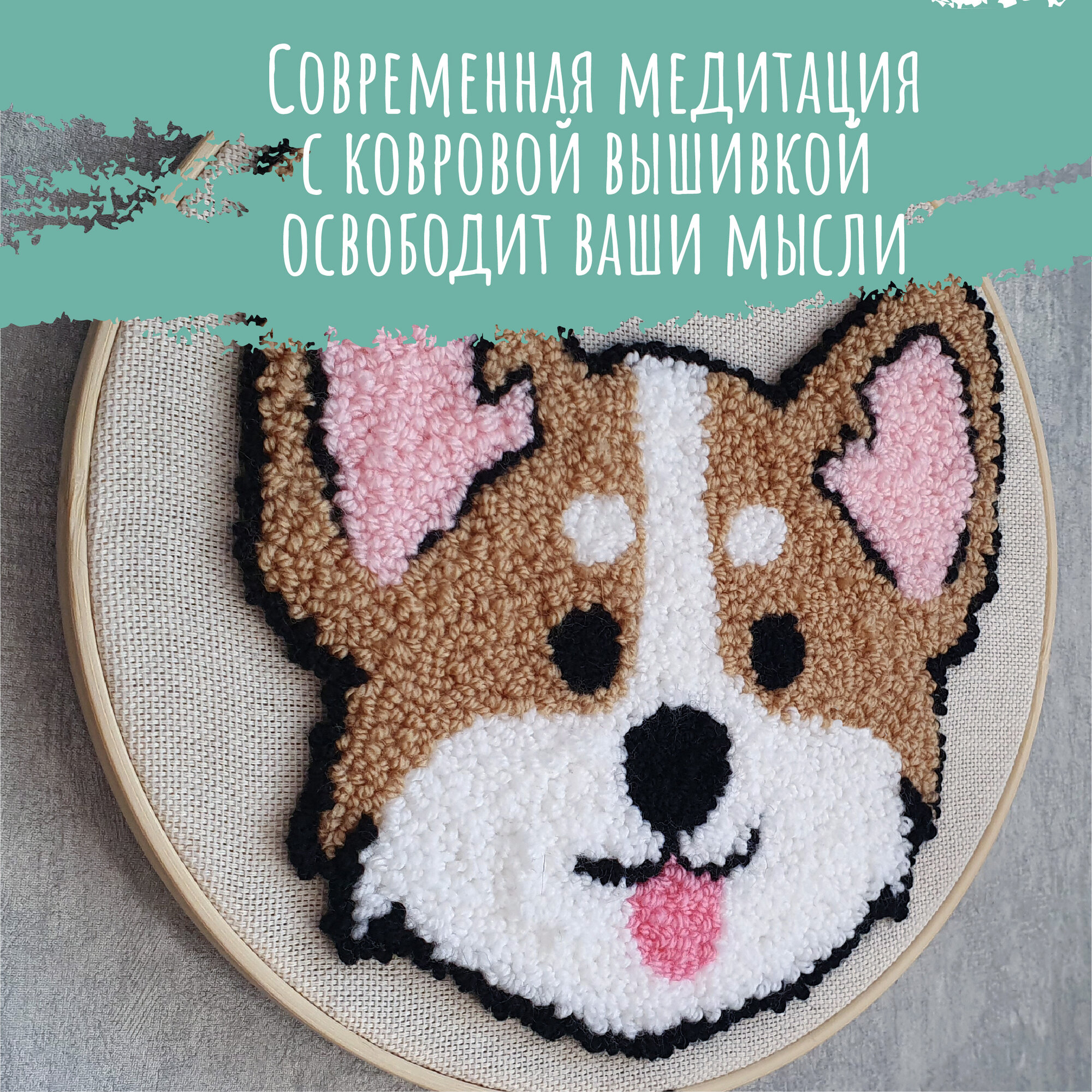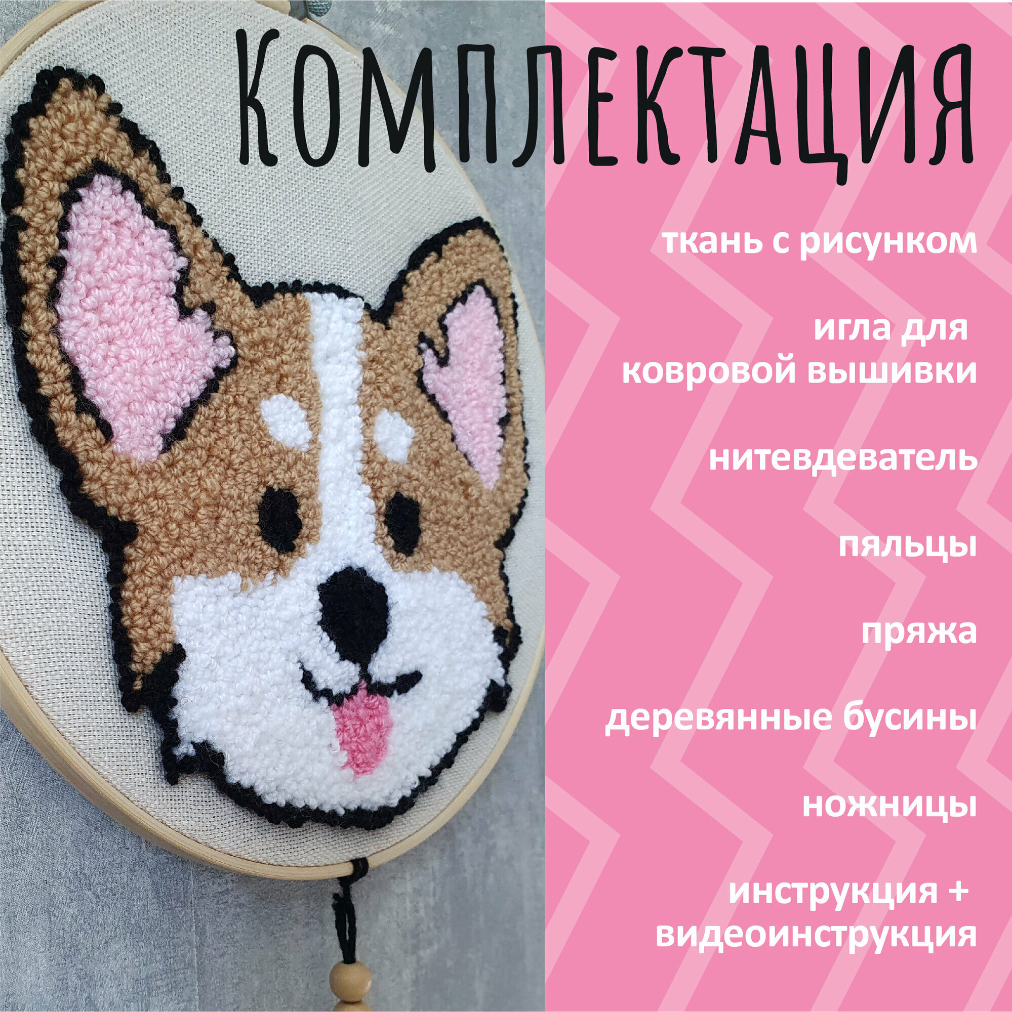 Набор для вышивания в ковровой технике Корги интересное: