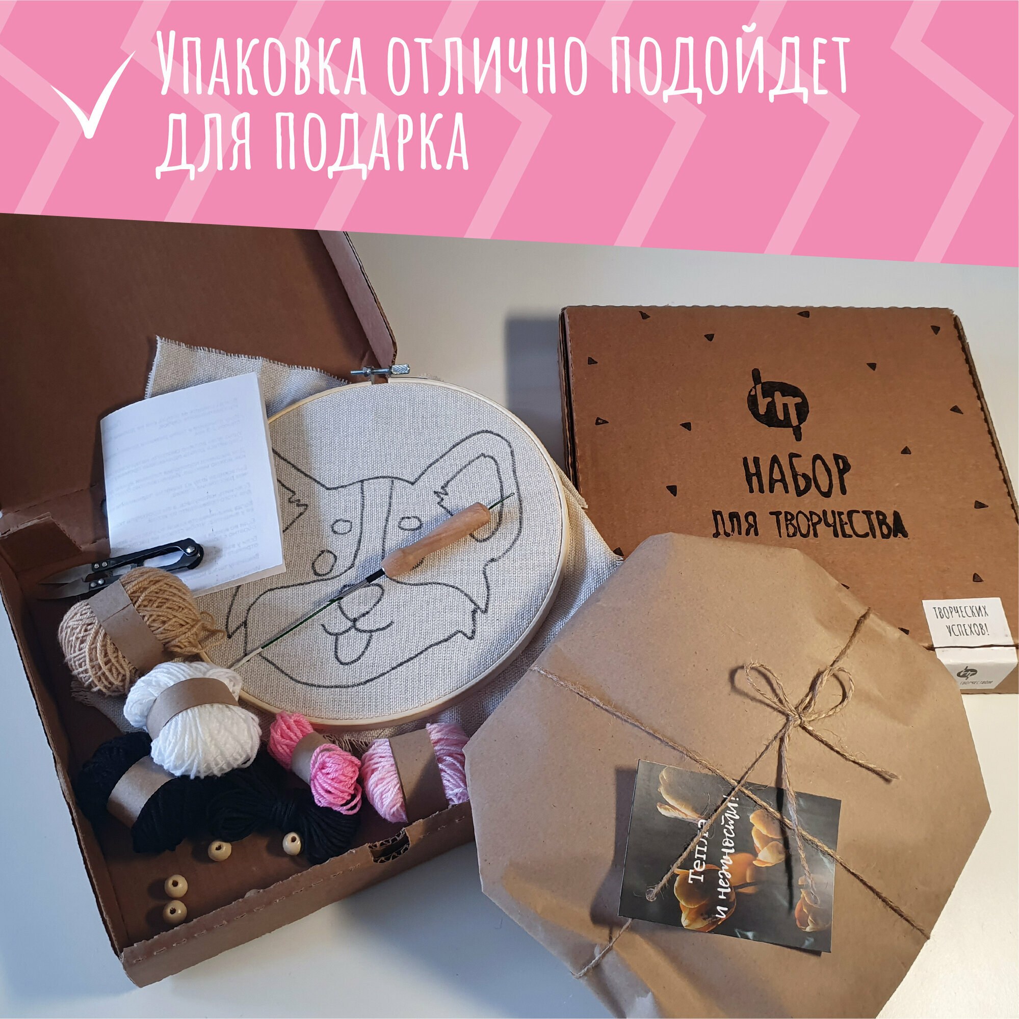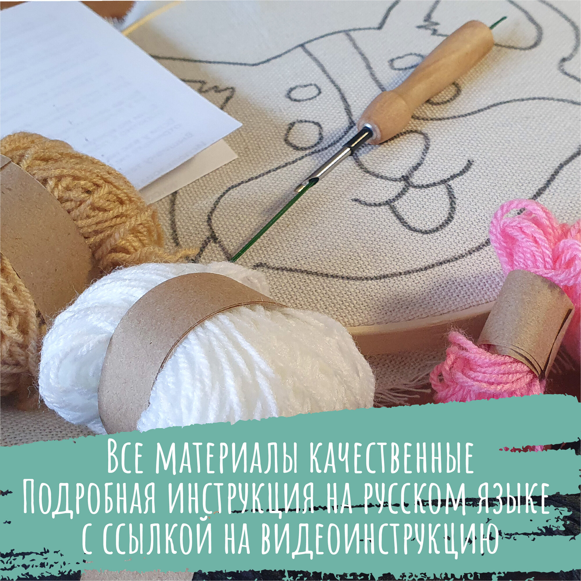 | Комплектация | Что включает в себя творческий набор: ткань с нанесенным рисунком, игла для вышивания с нитевдевателем, пяльцы диаметром 23 см, ножницы, пряжа акриловая всех необходимых цветов, деревянные бусины, хлопковая пряжа для элементов макраме, инструкция и ссылка на видеоинструкцию. |