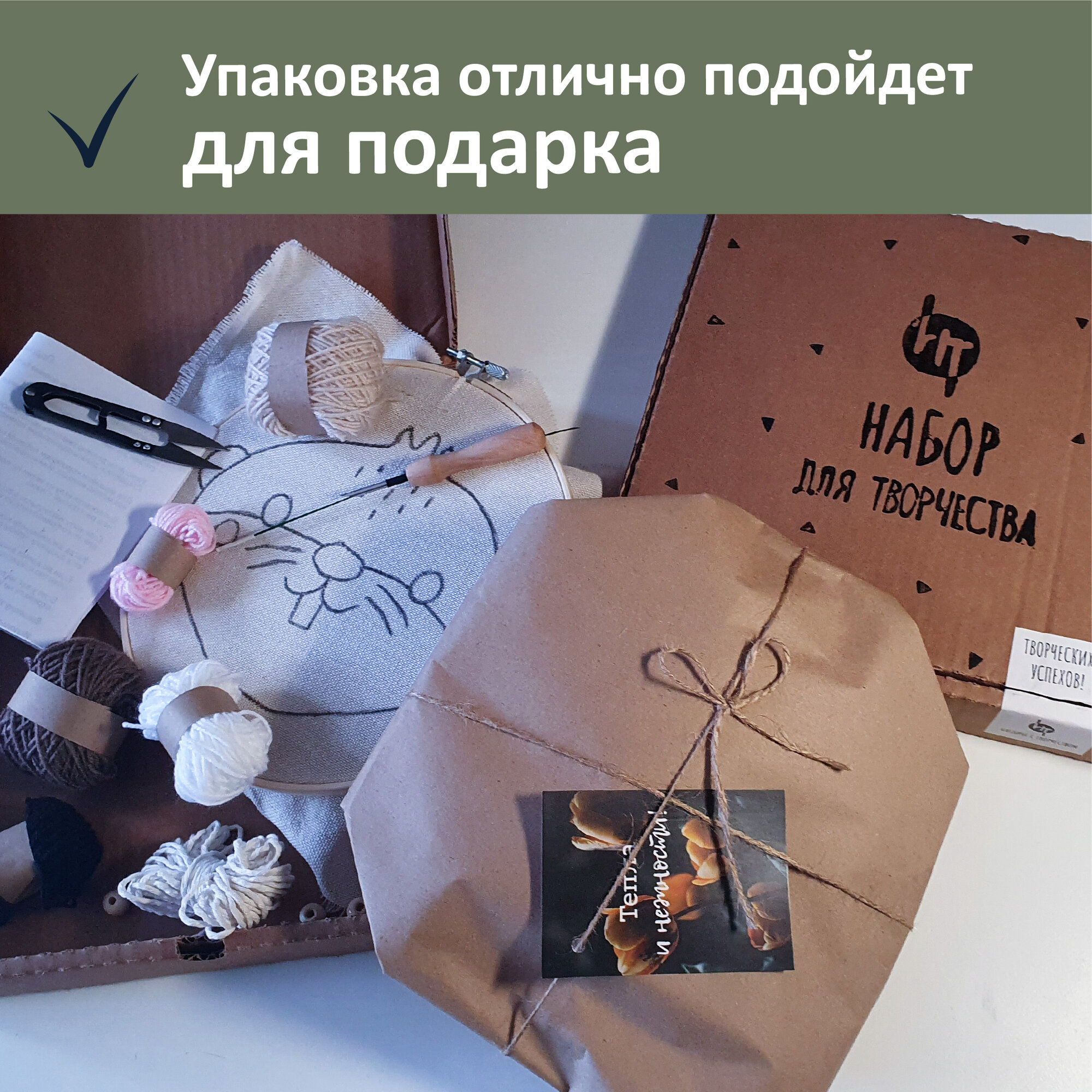| Комплектация | Что включает в себя творческий набор: ткань с нанесенным рисунком, игла для вышивания с нитевдевателем, пяльцы диаметром 23 см, ножницы, пряжа акриловая всех необходимых цветов, деревянные бусины, хлопковая пряжа для элементов макраме, инструкция и ссылка на видеоинструкцию. |