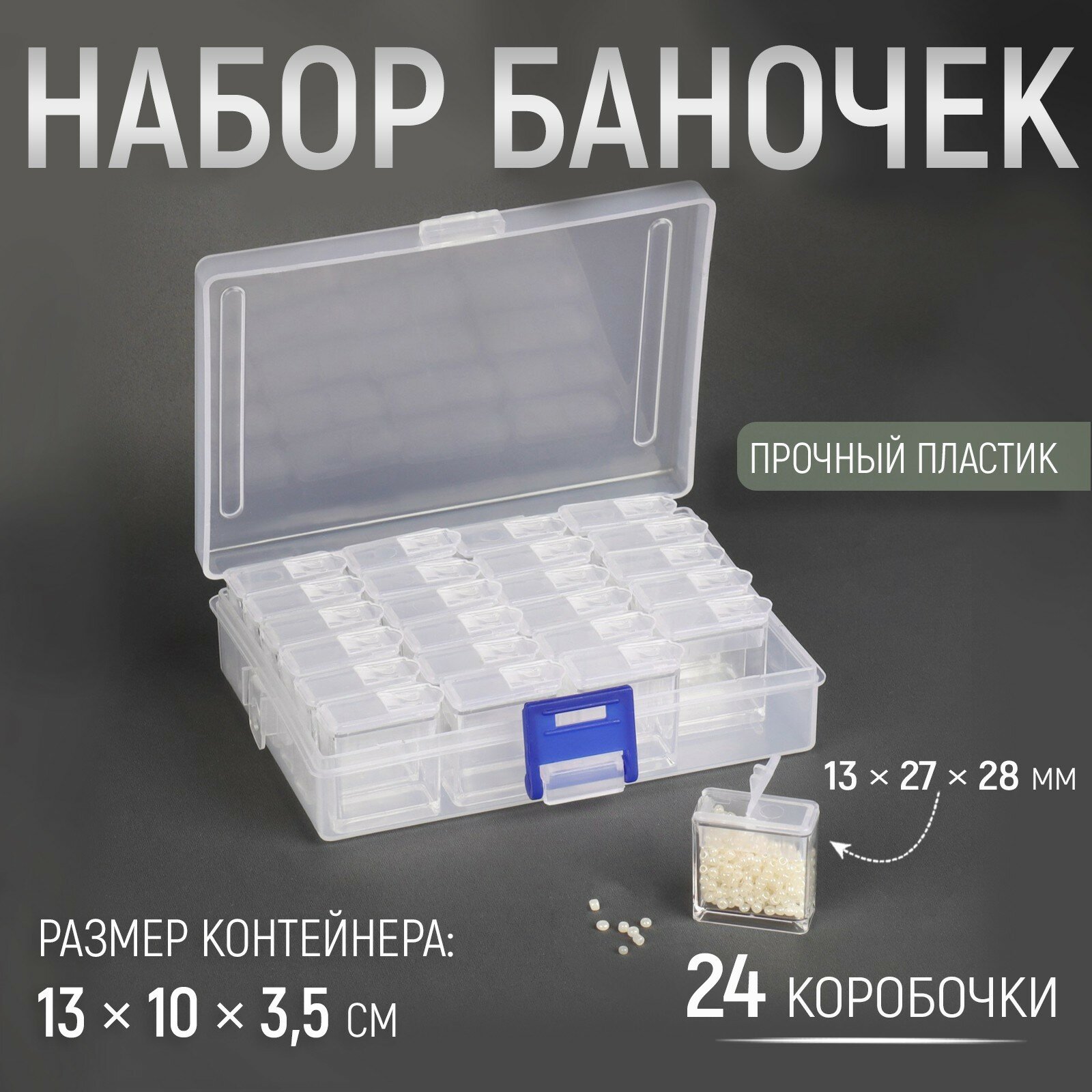 Купить Контейнер для рукоделия 24 бутылочки 13*27*28мм пластик коробка 13*10*3,5см прозрачный АУ 7823905