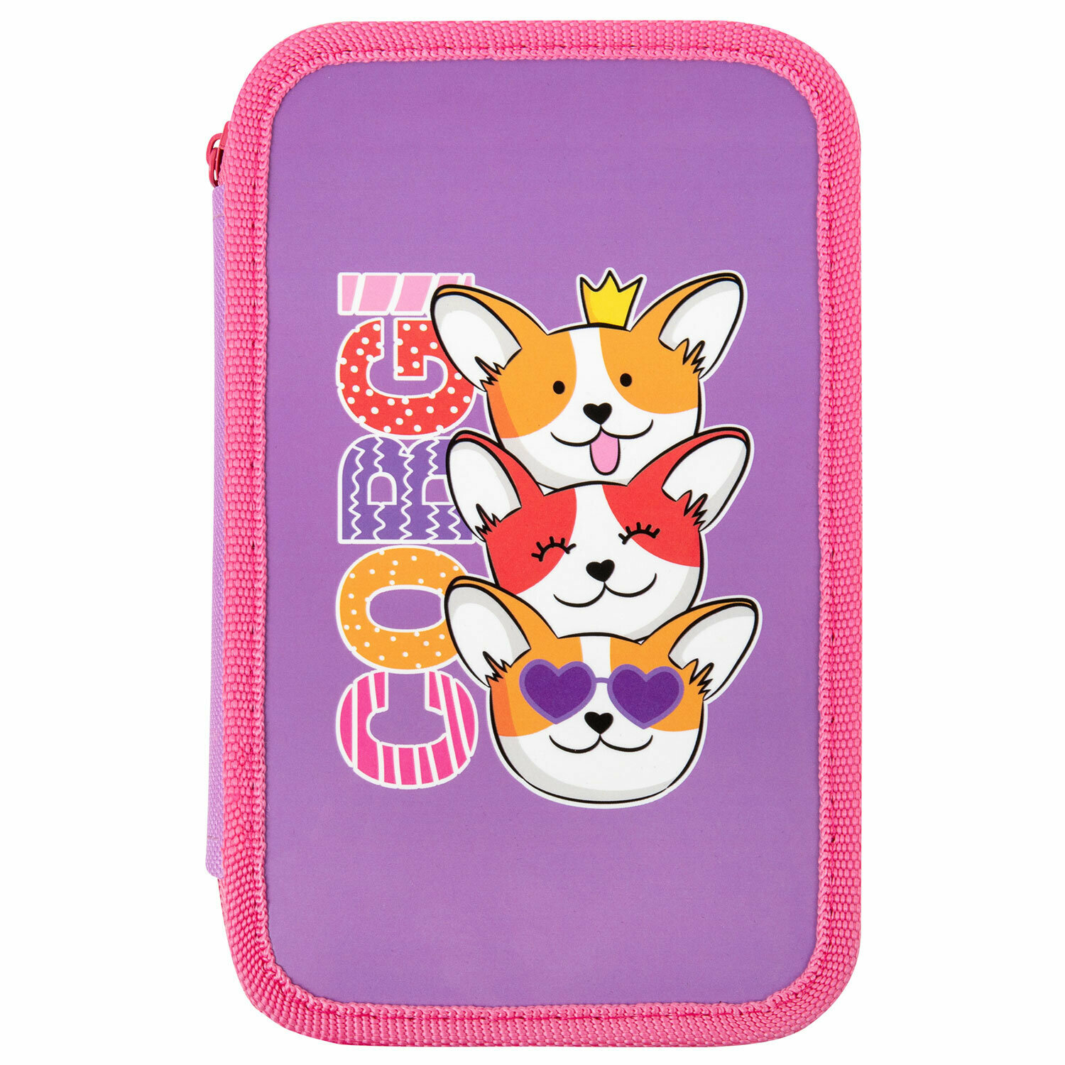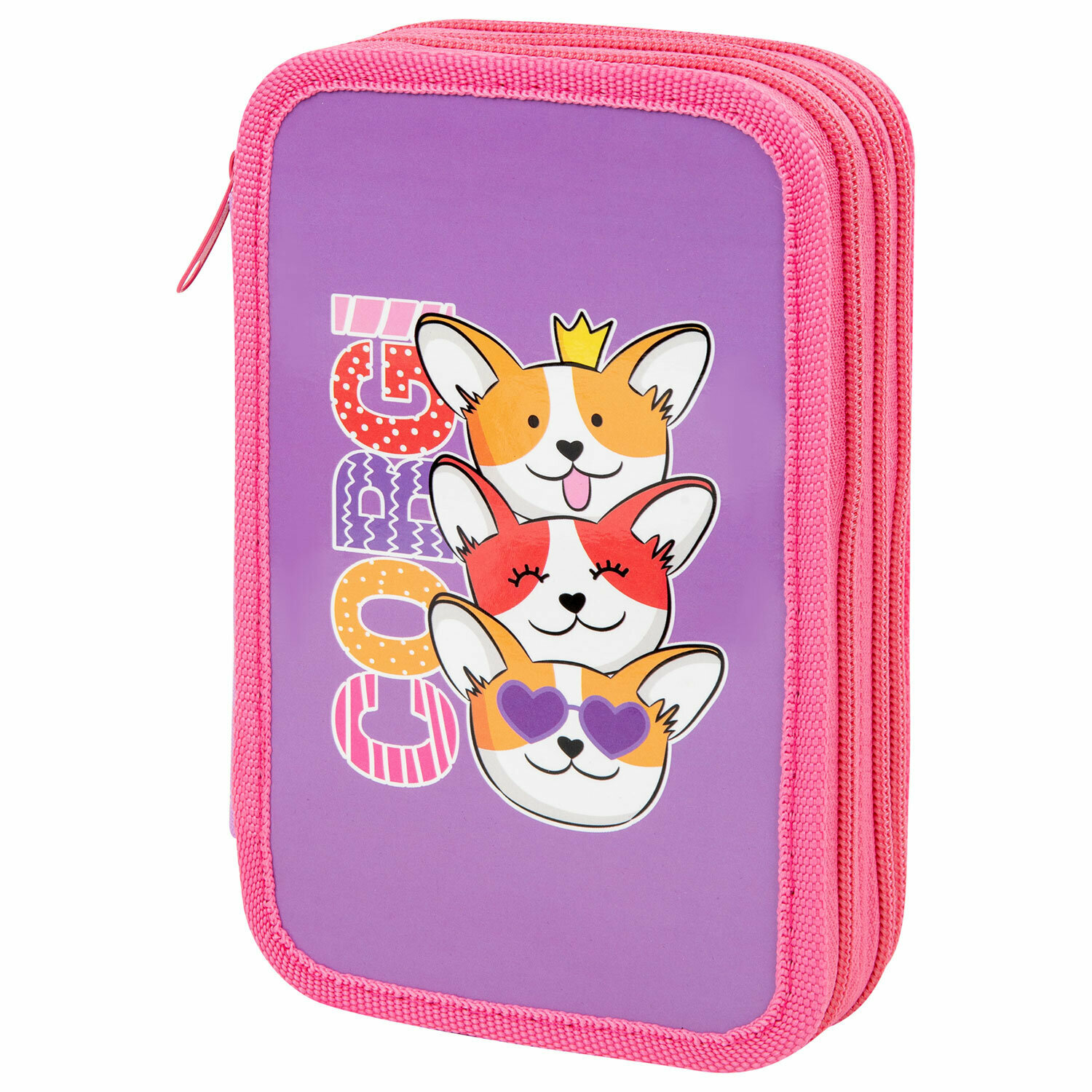 Купить Пенал Пифагор, 3 отделения, ламинированный картон, 19х11 см, Corgi queen, 272250