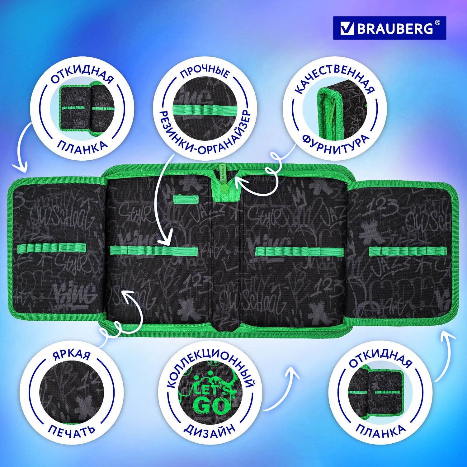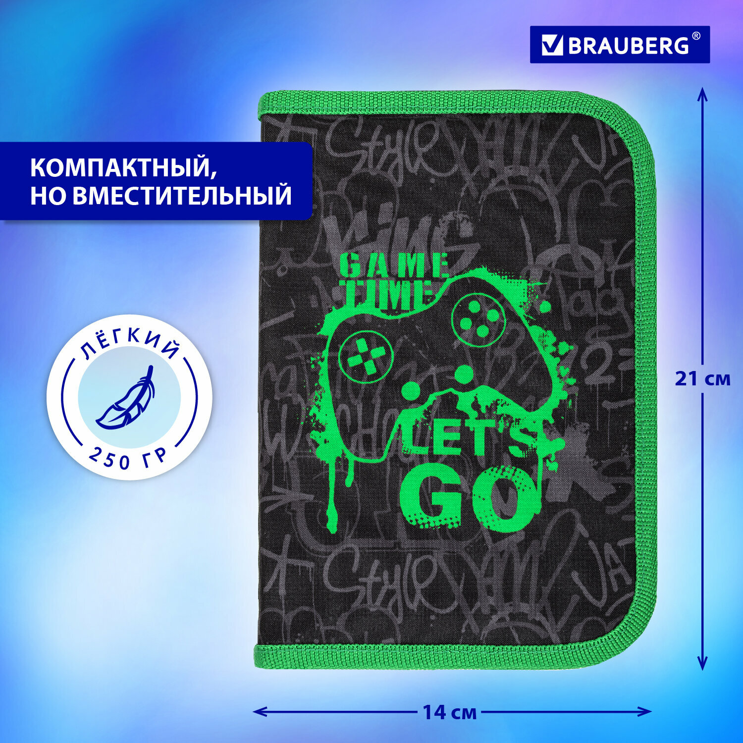 СохранитьПенал Brauberg, 1 отделение, 2 откидные планки, полиэстер, 21х14 см, Game time, 272321 интересное: