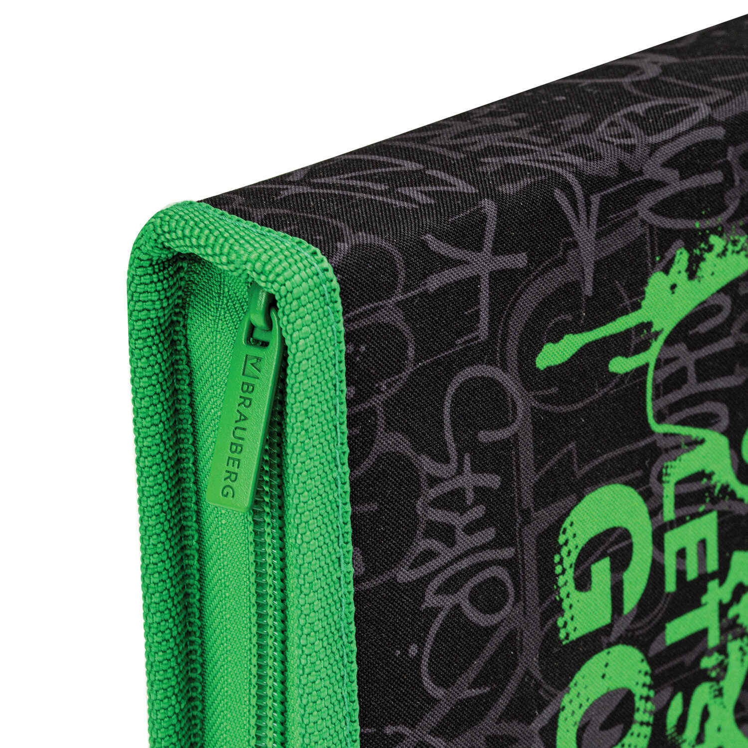Пенал-косметичка Brauberg, 1 отделение, органайзер, полиэстер, 22x11,5x6 см, зеленый