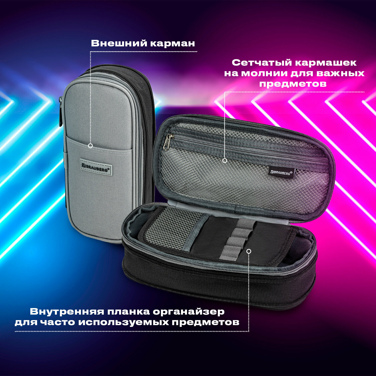 Пенал BRAUBERG, 1 отделение, 1 откидная планка, полиэстер, 21х14 см, "Next level", 270714
