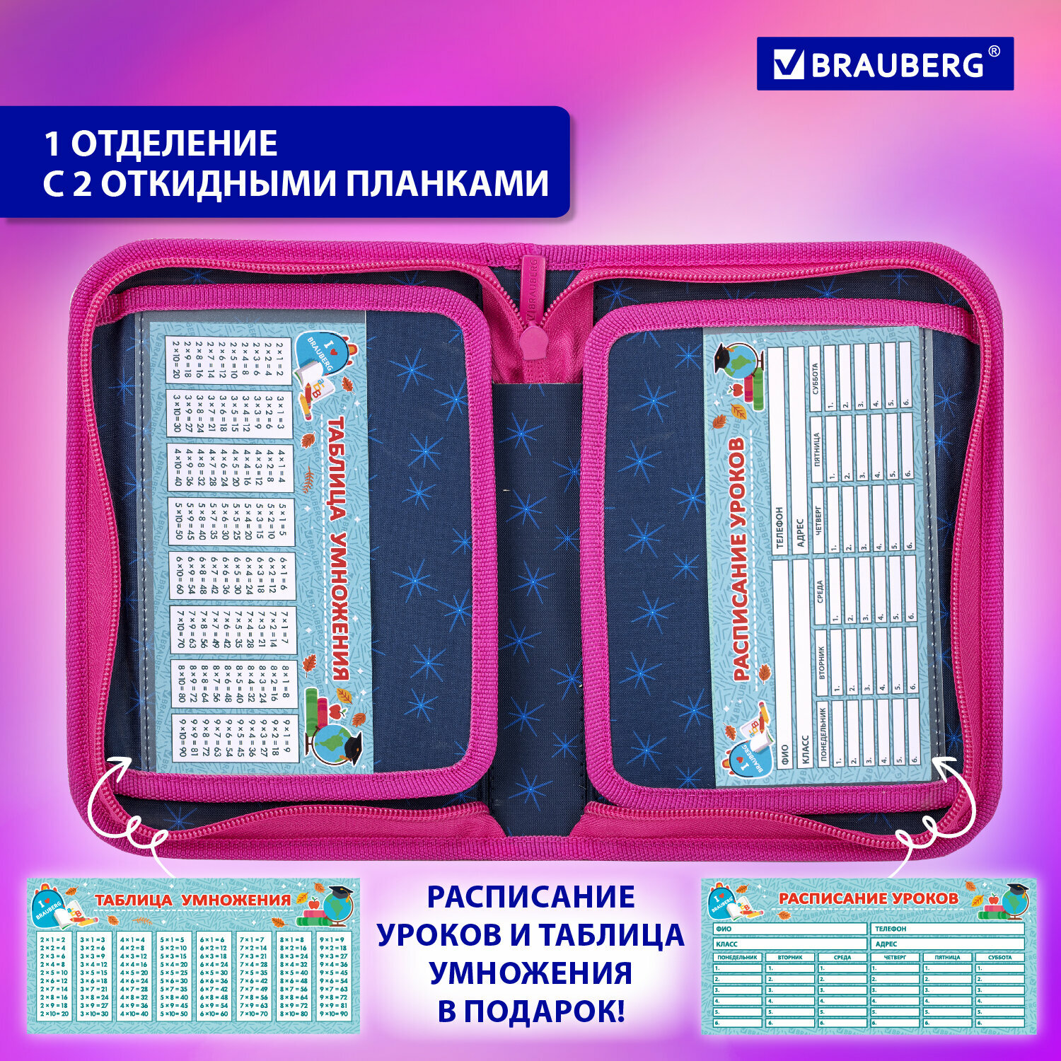 Пенал школьный для девочки / подростка для ручек, карандашей Brauberg, 1 отделение, 2 откидные планки, полиэстер, 21х14 см, 271514
