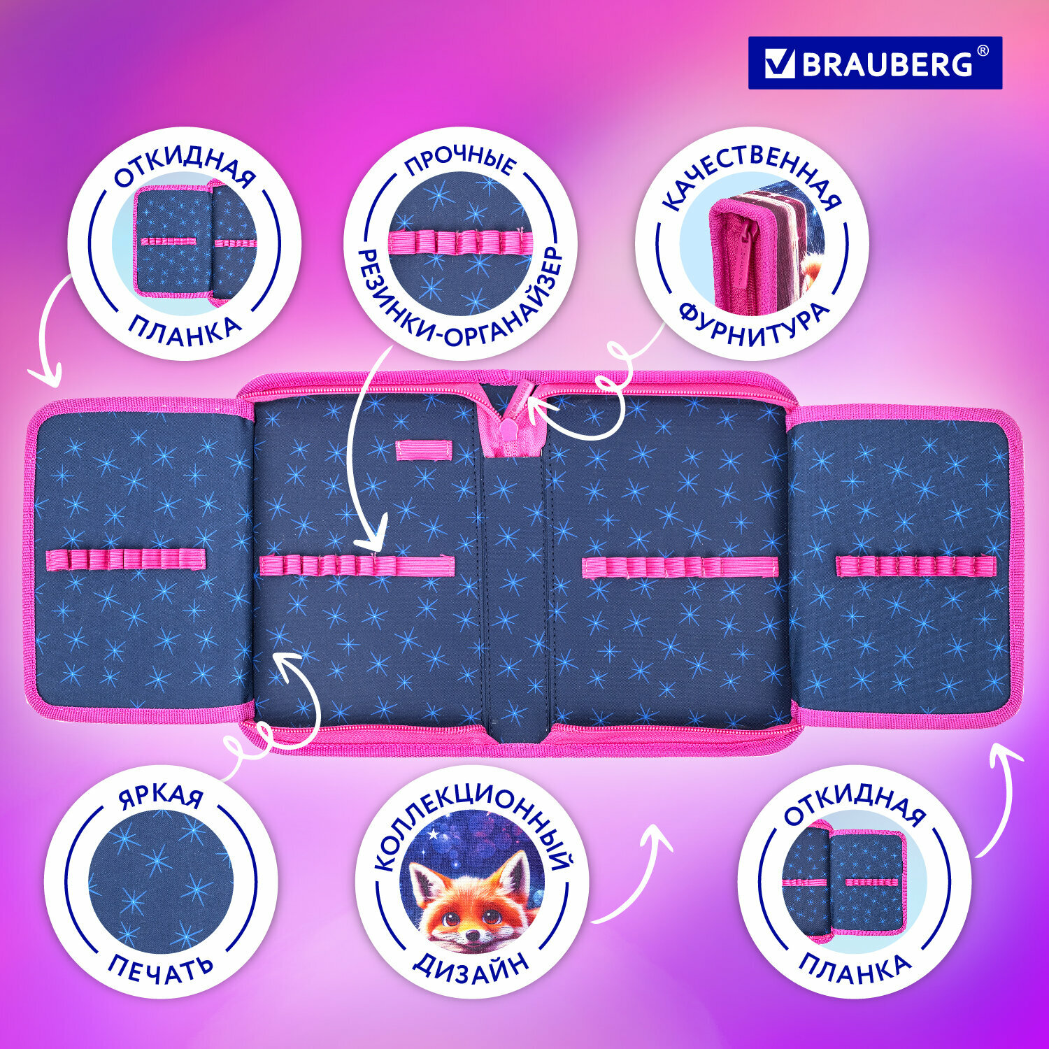 Купить Пенал BRAUBERG, 1 отделение, 2 откидные планки, полиэстер, 21х14 см, Cute fox, 272318