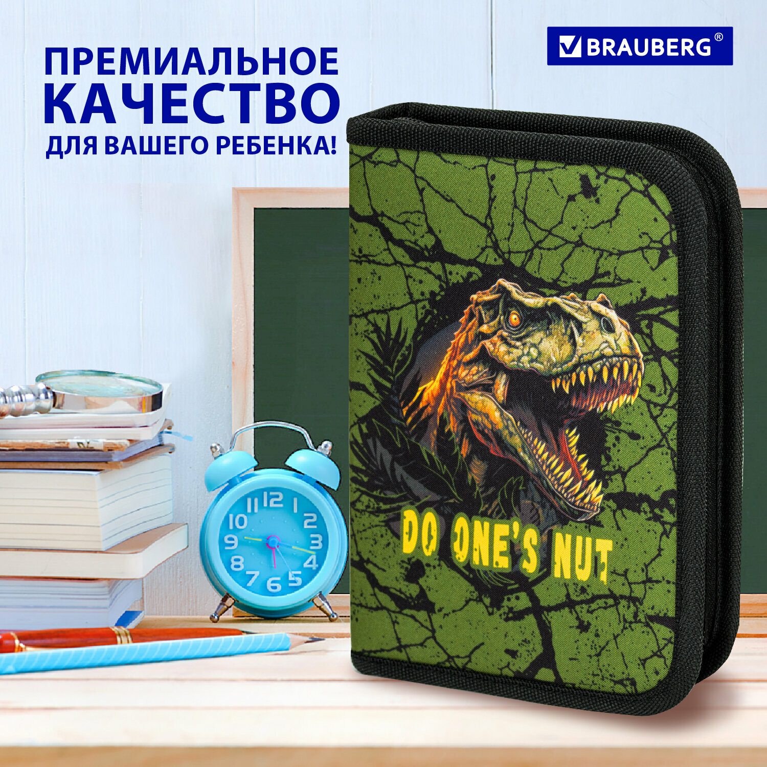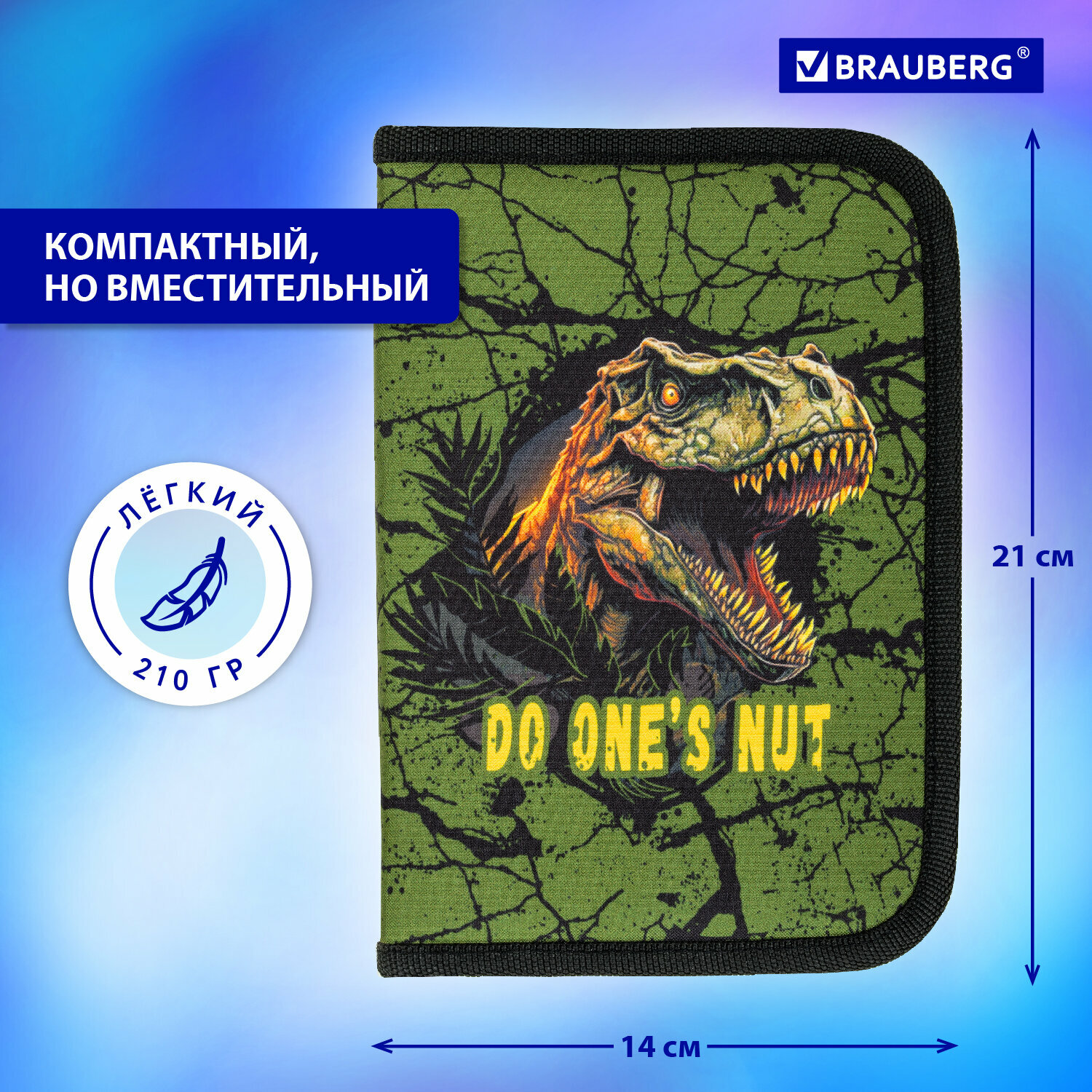 Купить Пенал Brauberg, 1 отделение, 1 откидная планка, полиэстер, 21х14 см, Dino attack, 272324